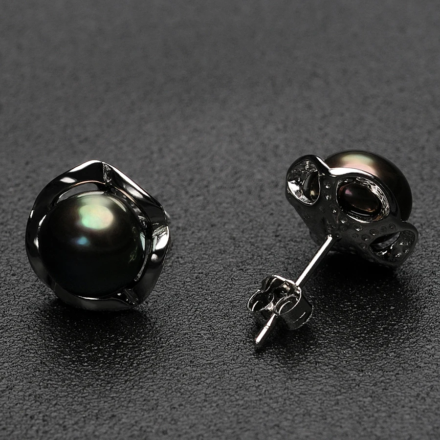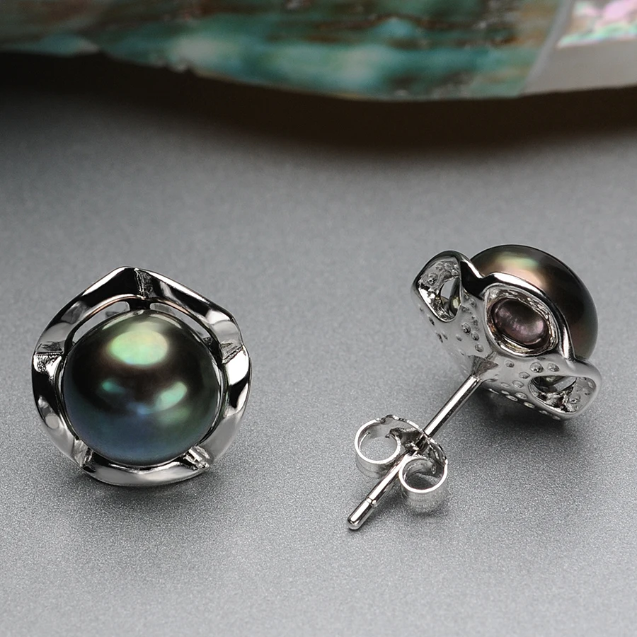 Retro Style 8-9mm Black Pearl Stud Earring for Women High quality 925 Sterling Silver Earrings Pearl Jewelry