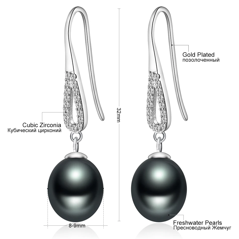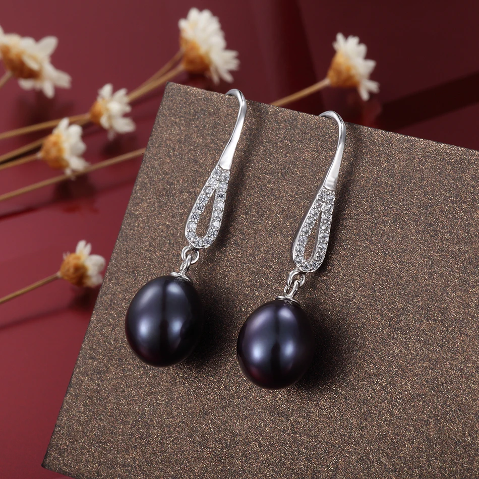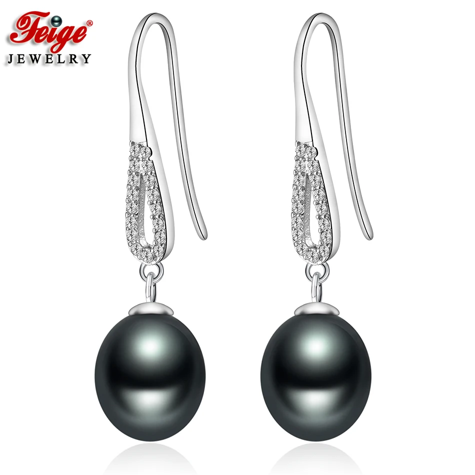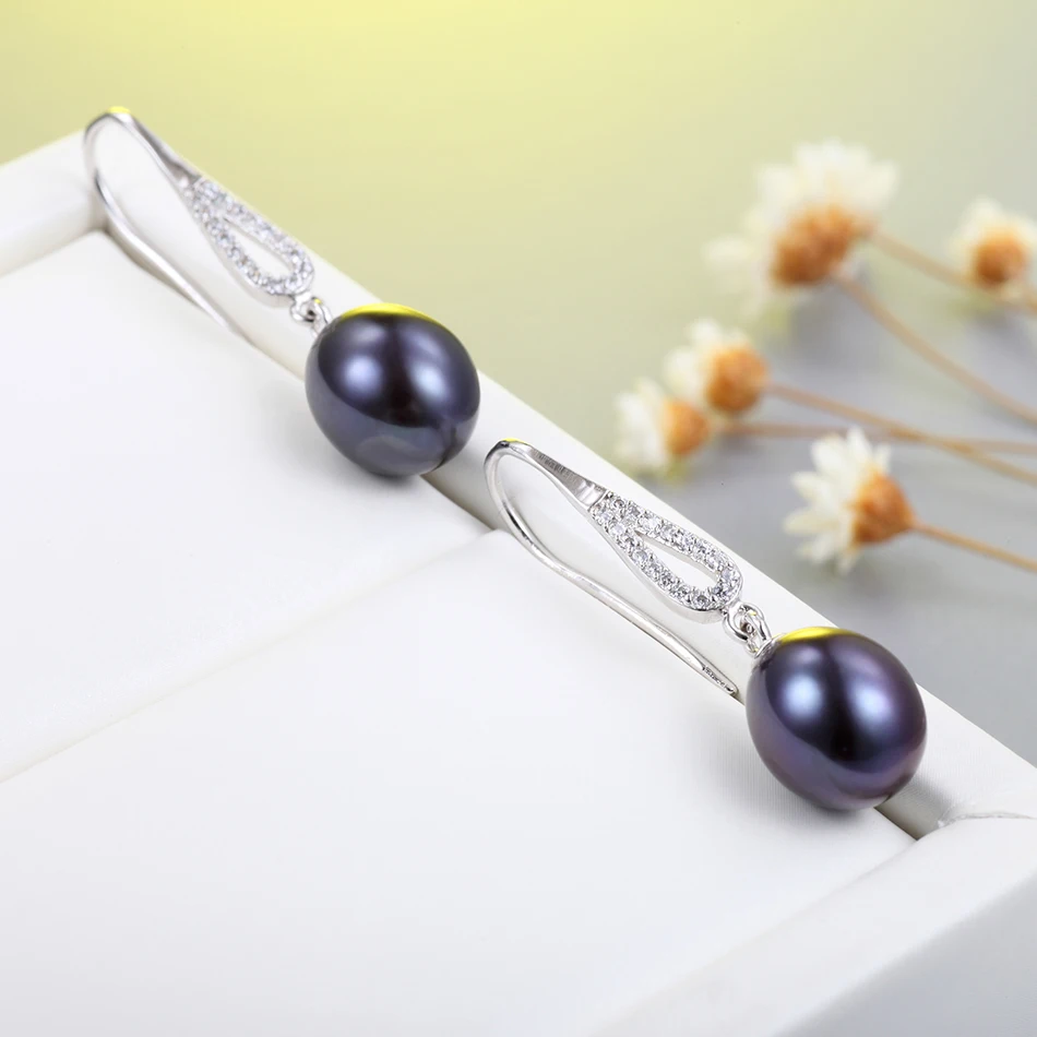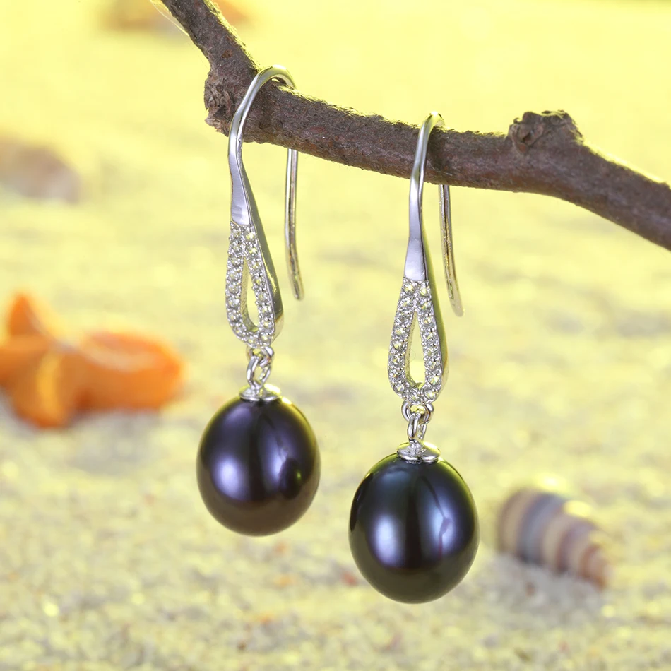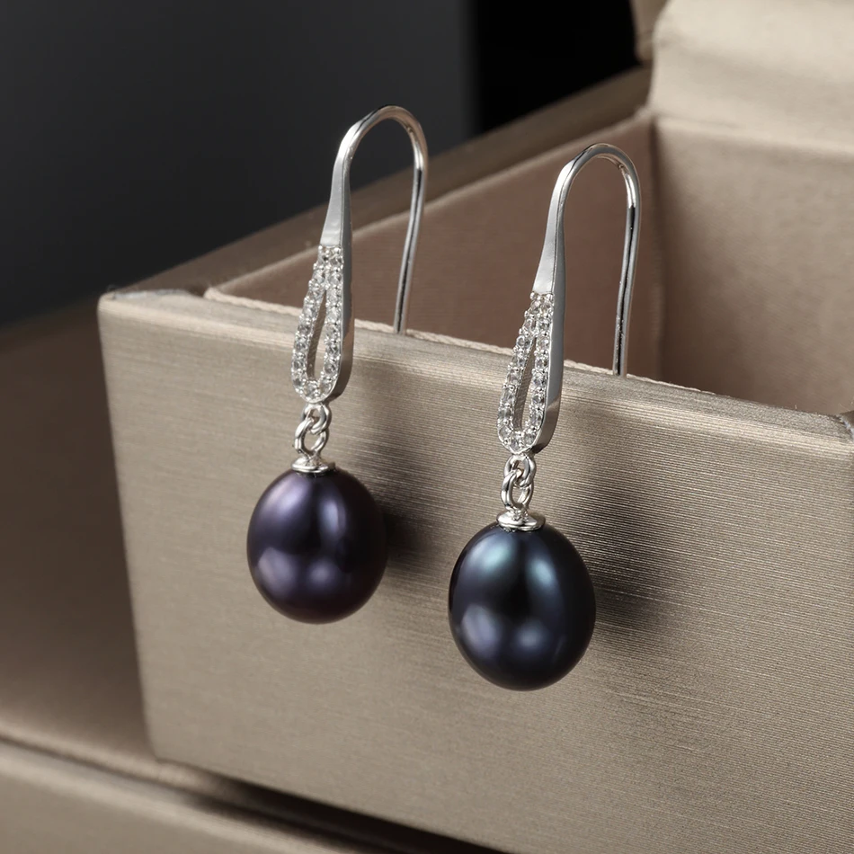 Retro Style Anti-allergic Real Pearl Earring 8-9MM Black Cultured Pearls Drop Earrings for Women Fashion Jewelry Brincos
