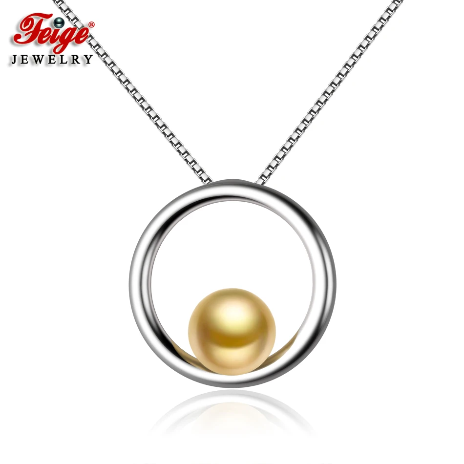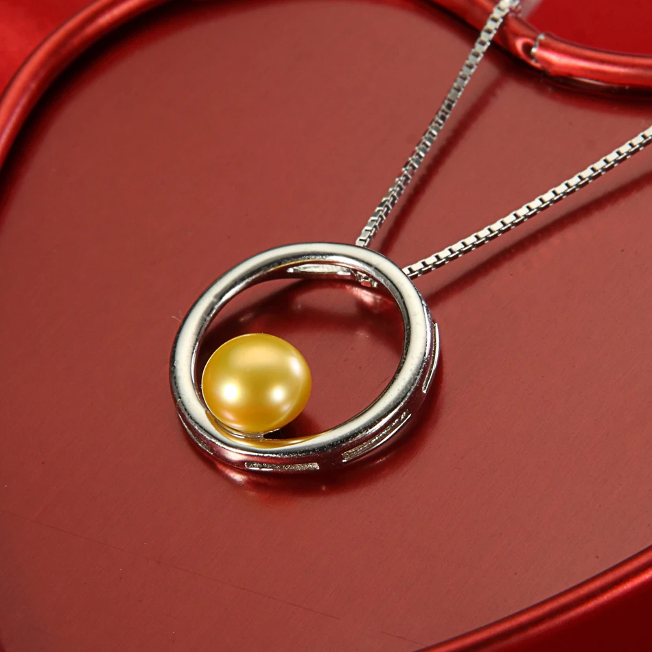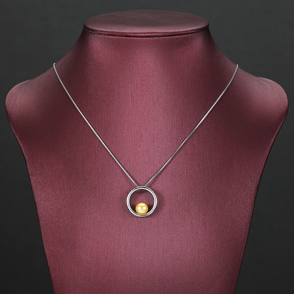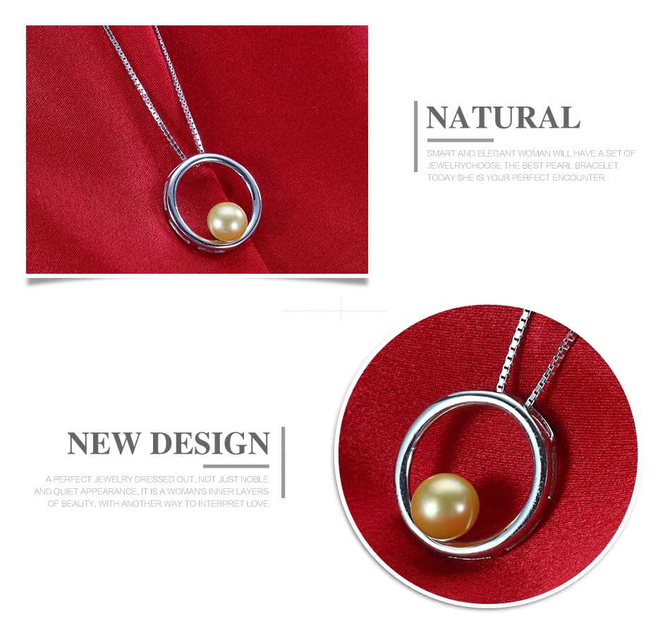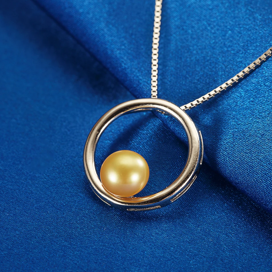 Simple style Real 925 Sterling Silver Pendant Necklaces 7-8mm Golden Pearl Necklace for Women Fine Jewelry