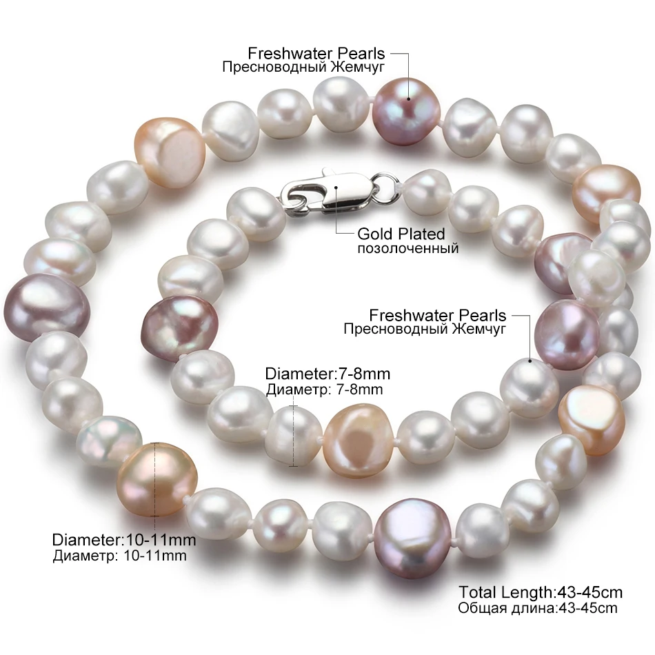 offer Baroque 7-8/10-11MM Multicolor Pearl Necklace for Women Trendy style Fine Pearl Jewelry Bijoux