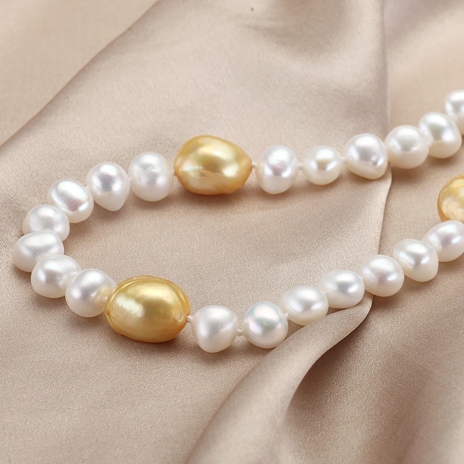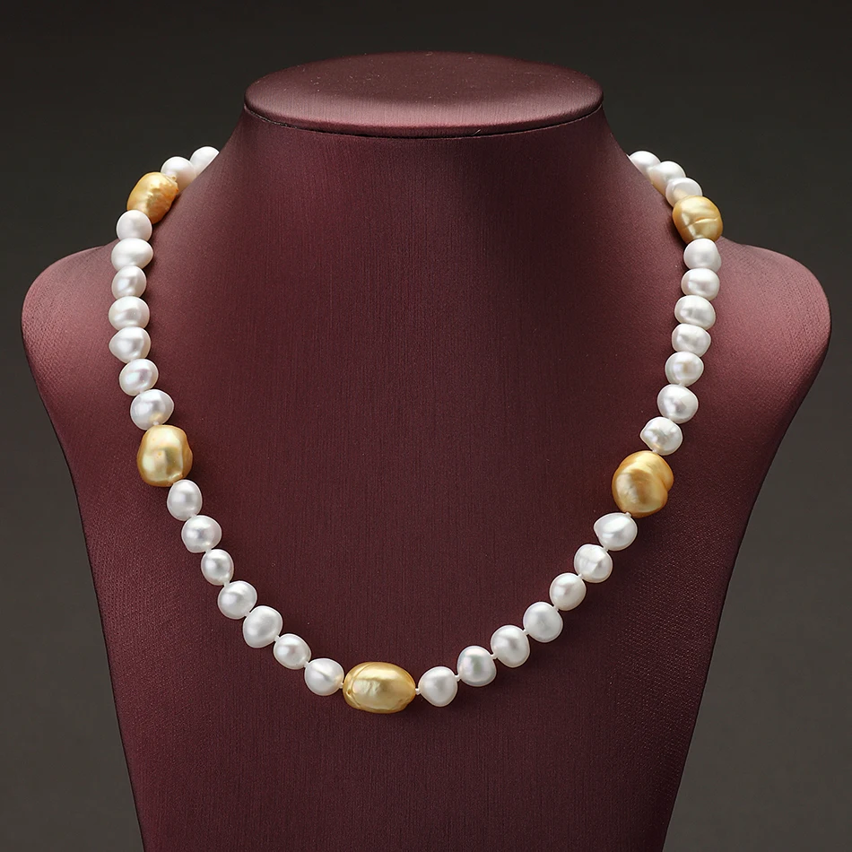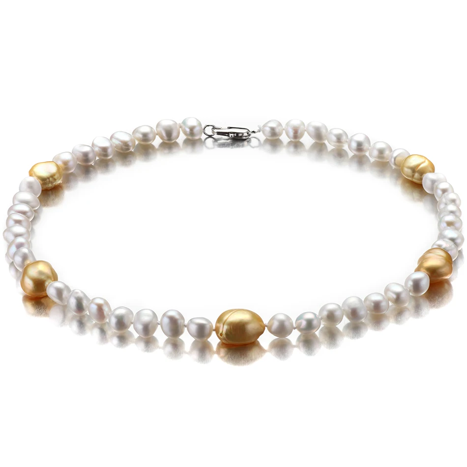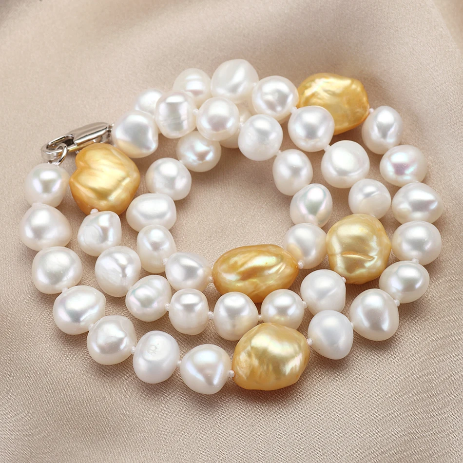 offer Baroque 7-8/10-11MM White/Golden Color Pearl Necklace for Women's De moda Collar Fine Pearl Jewelry