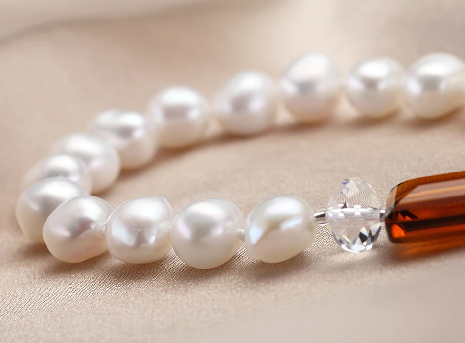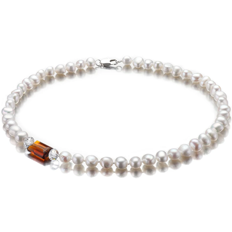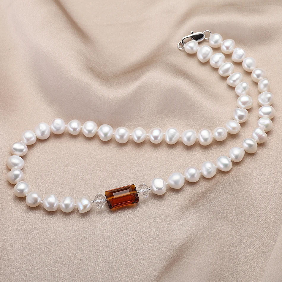 offer Baroque 7-8MM White Pearl Choker Necklace for Women's Orange Crystal Collar Pearl Fine Jewelry