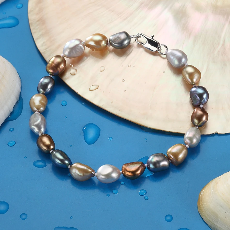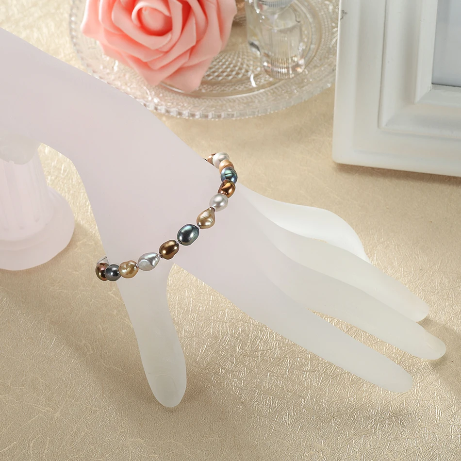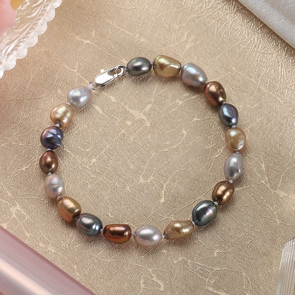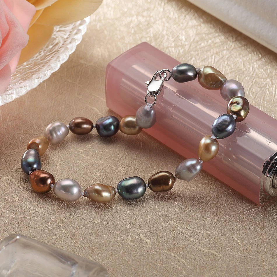 offer fashion Baroque style 7-8MM Multicolor Pearl Strand Bracelets & Bangles For Women's Fine Pearls Jewelry