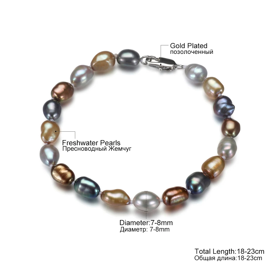 Vintage Multicolor Baroque Pearl Bracelet for Women Gifts 7-8MM Pearl Strand Bracelet Fine Jewelry Dropshipping FEIGE