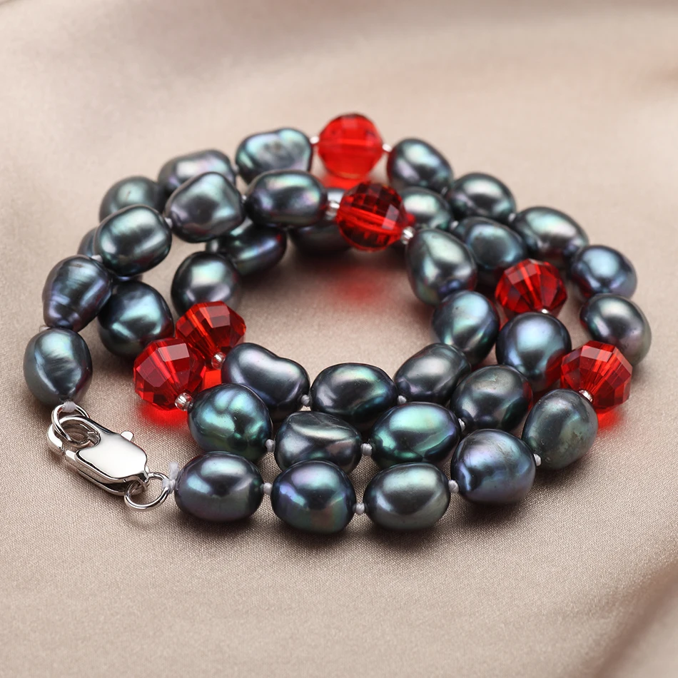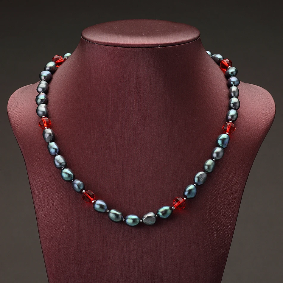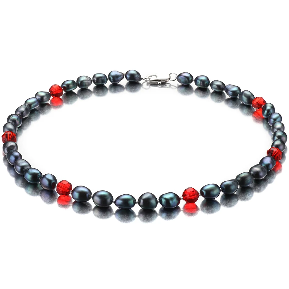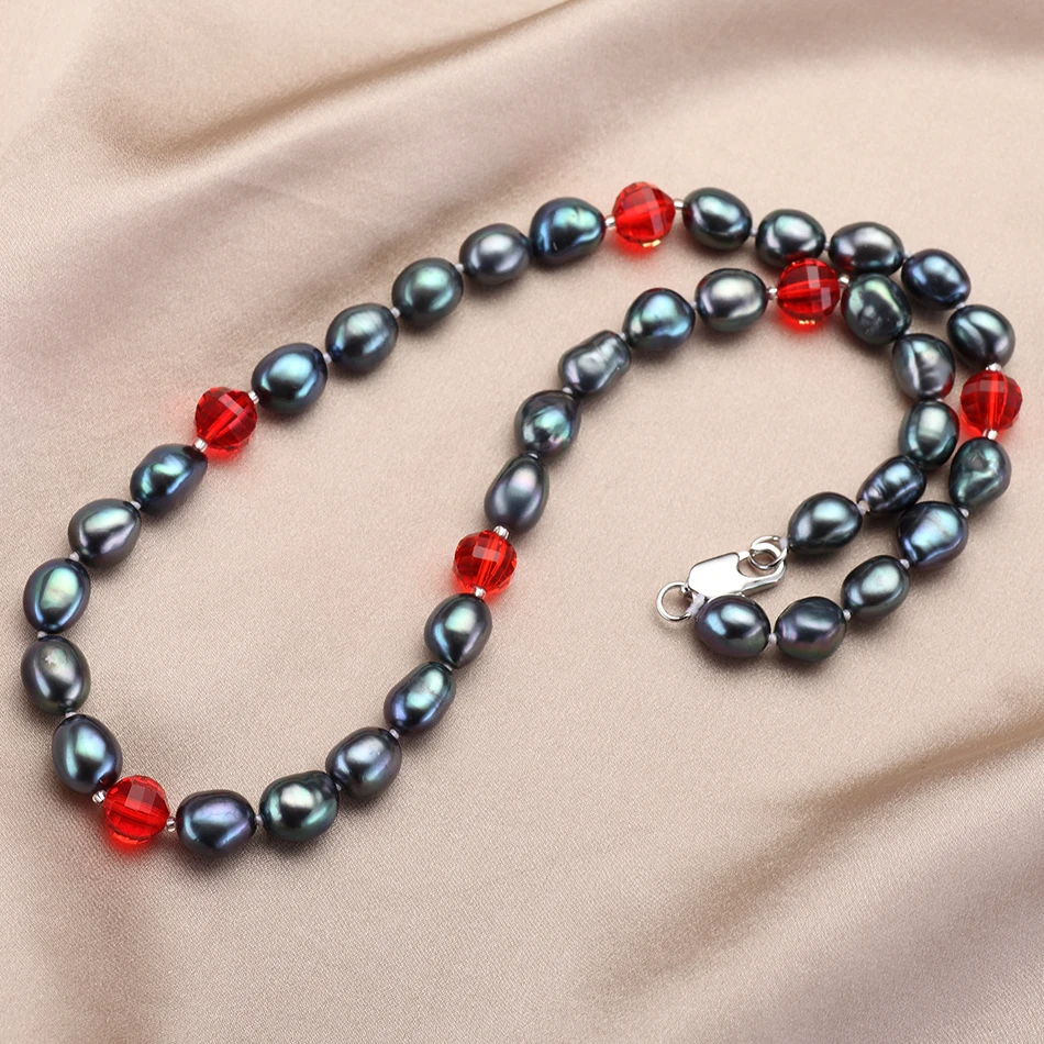 offer Trendy style Baroque 7-8MM Black Pearl Necklace for Women's Red Crystal Pearl Jewelry Collar