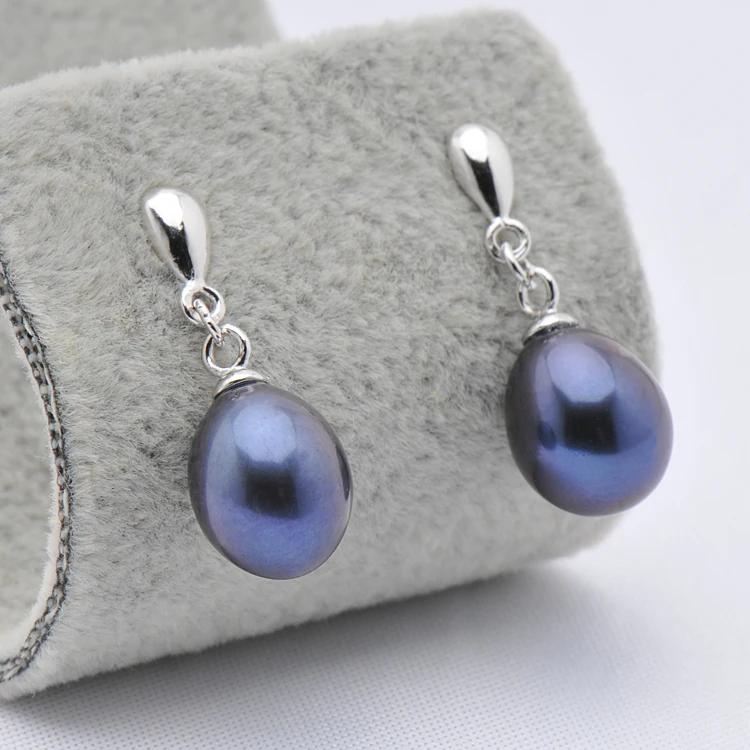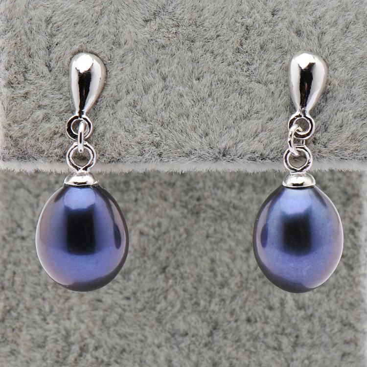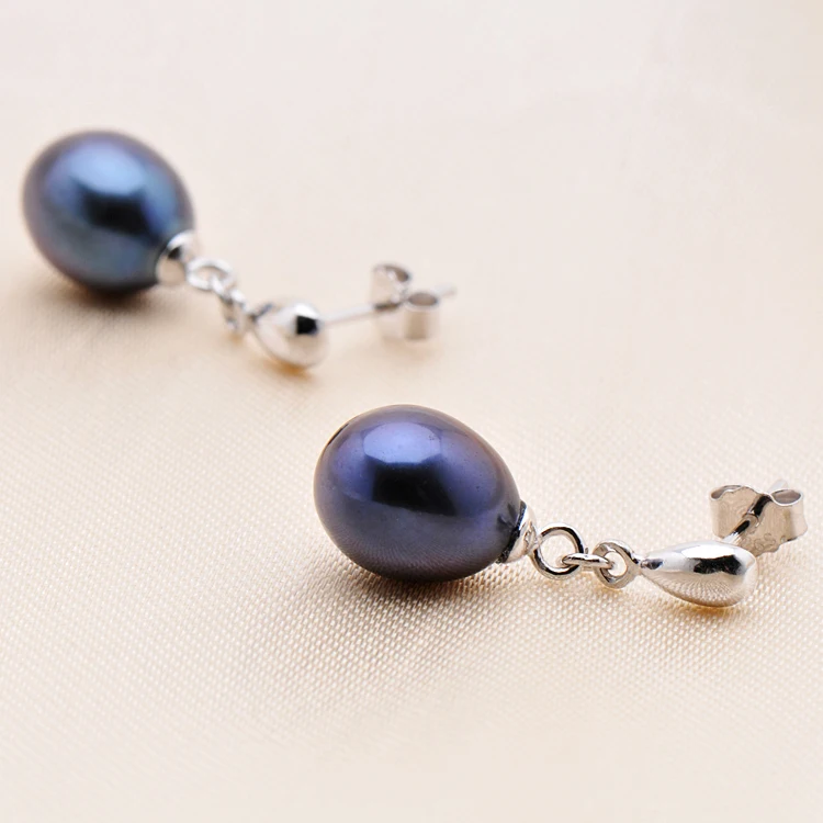 Vintage Style Women's Earrings 8-9mm Rice-shaped Natural Cultured Pearls 100% 925 Sterling Silver Earrings