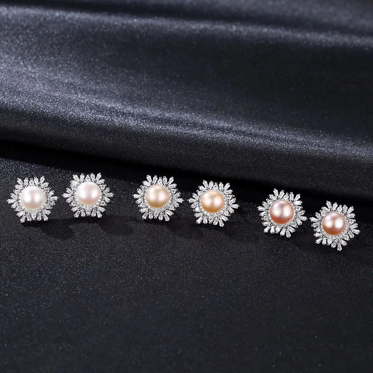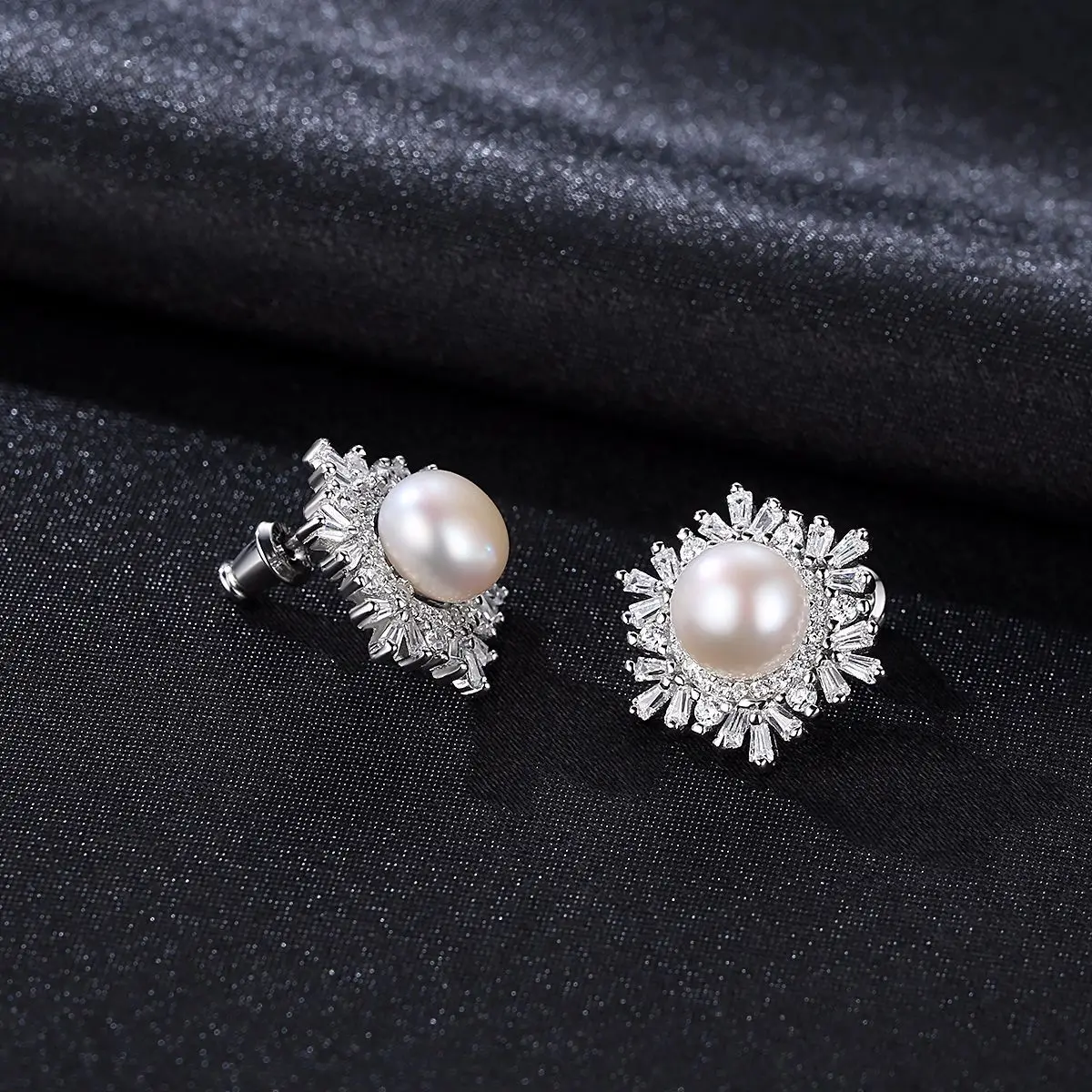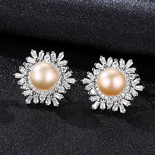 Female Snowflake Stud Earrings Natural Pearl Real 925 Sterling Silver Jewelry High Quality For Women Christmas Gifts