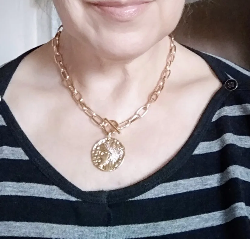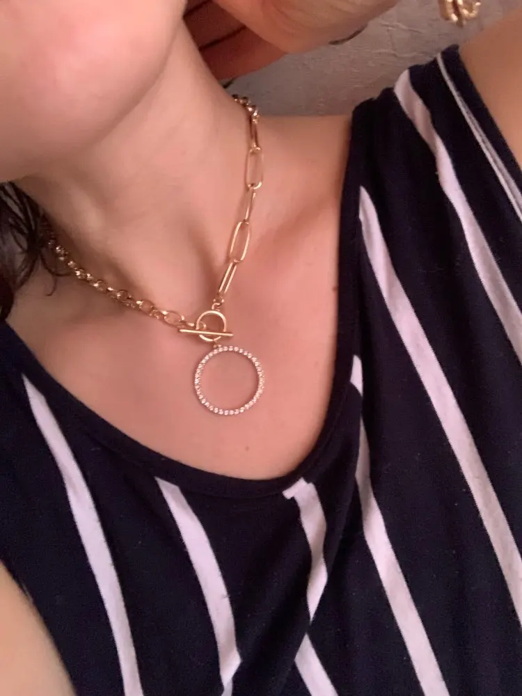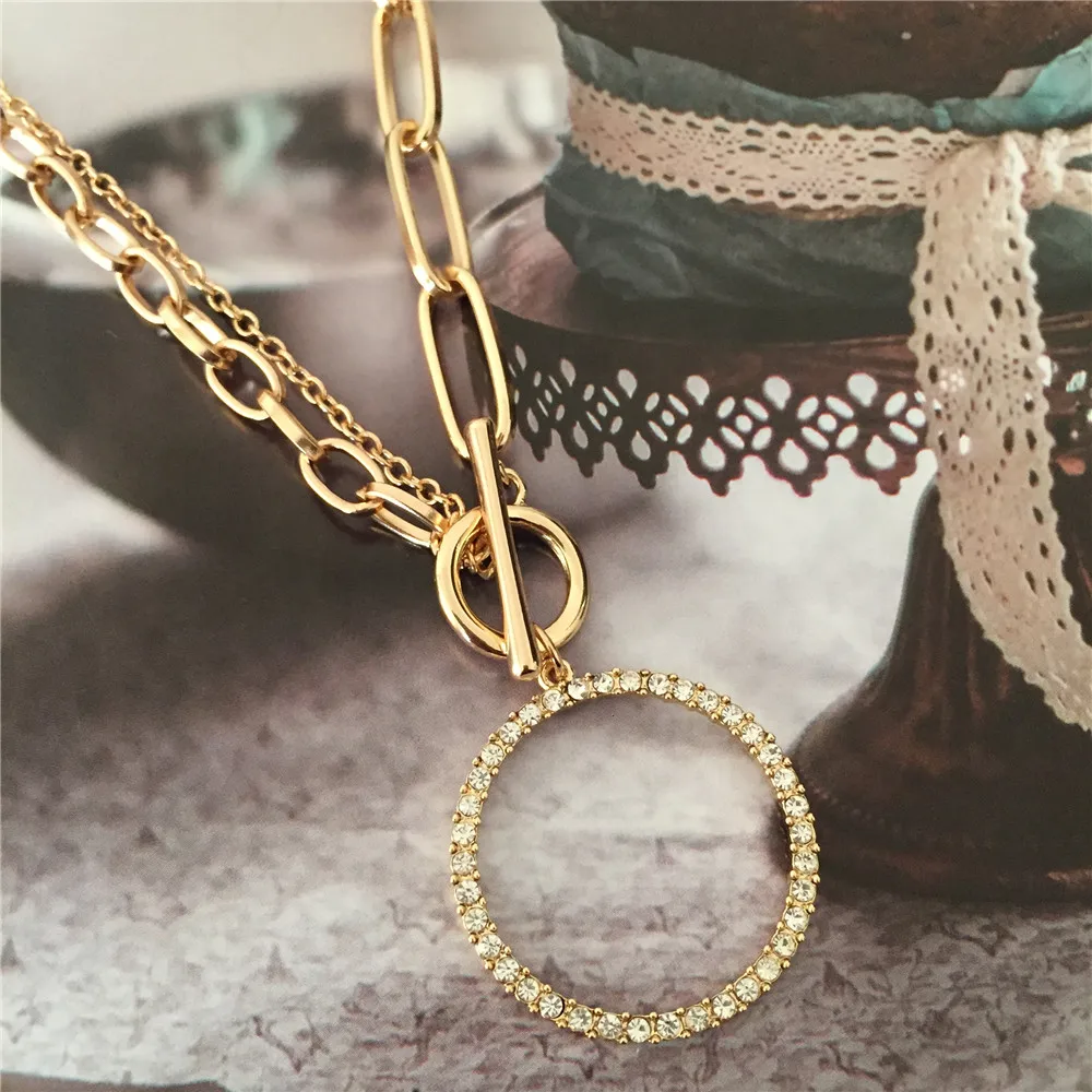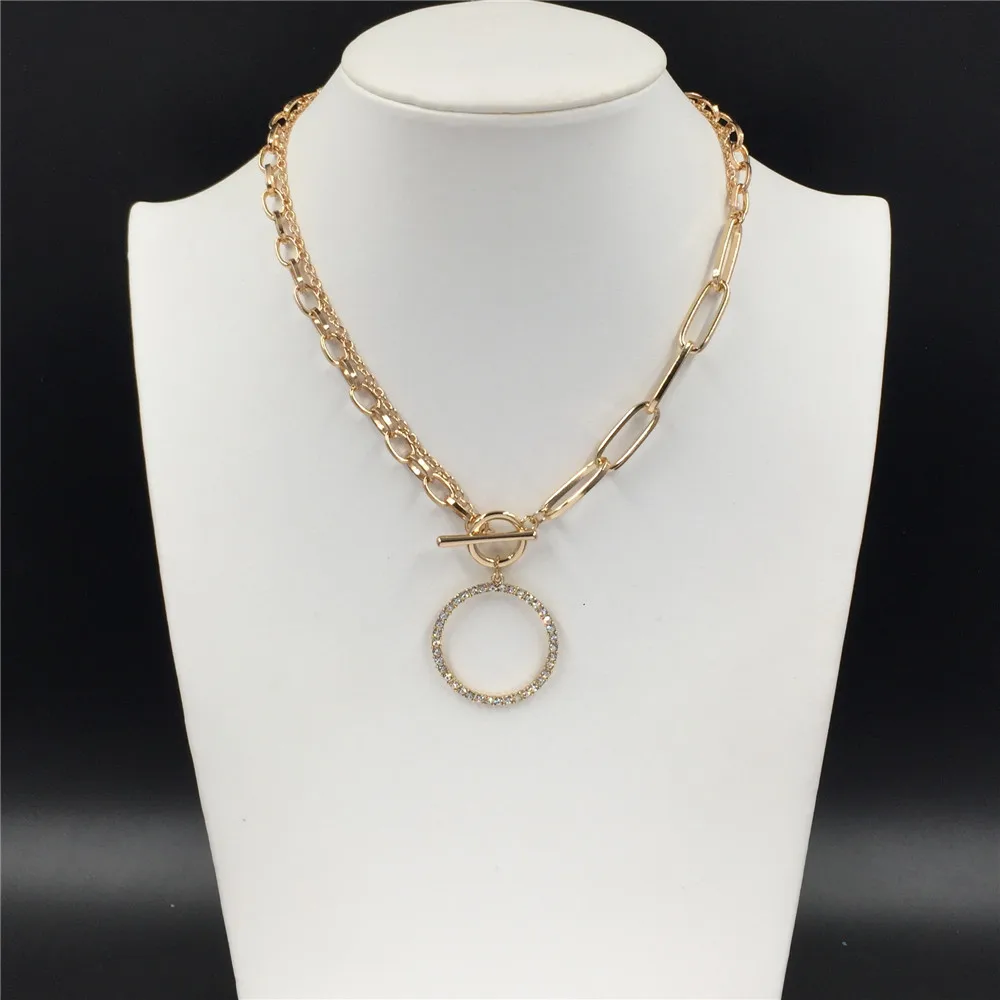 Feminist Gold Color Plating Clear Stone Paving Large Circle Pendant Special Chain Necklace For Women Girl Lady Gift Gorgeous