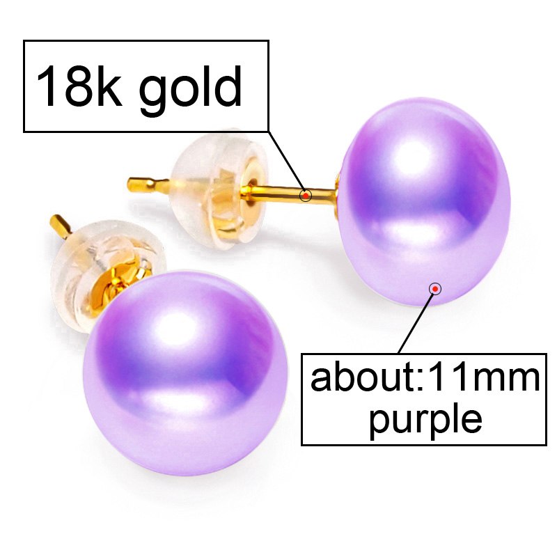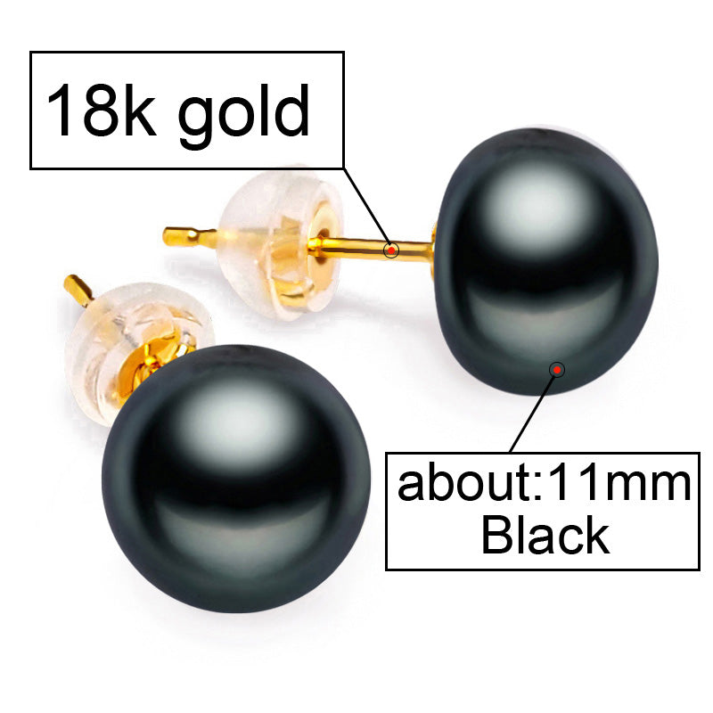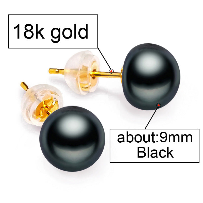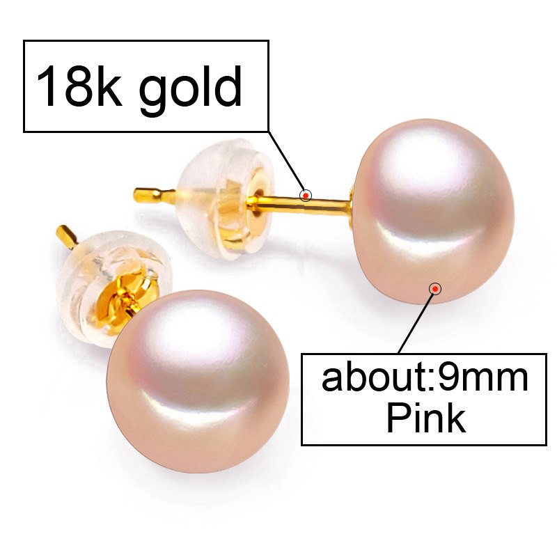 18K Gold earrings pearl Jewelry ,Pearl classic 18k yellow gold stud earrings for women gift box wedding earrings for love