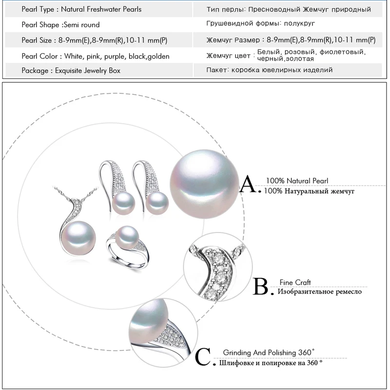 925 Sterling Silver natural pearl jewelry sets for women,stud earrings,bohemian pendant necklace engagement ring set