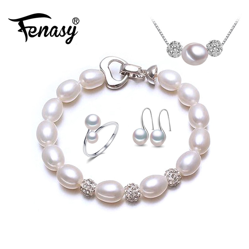 Pearl Jewelry sets romantic bracelet Natural Pearl pendant Necklace for women/stud earrings female ring set