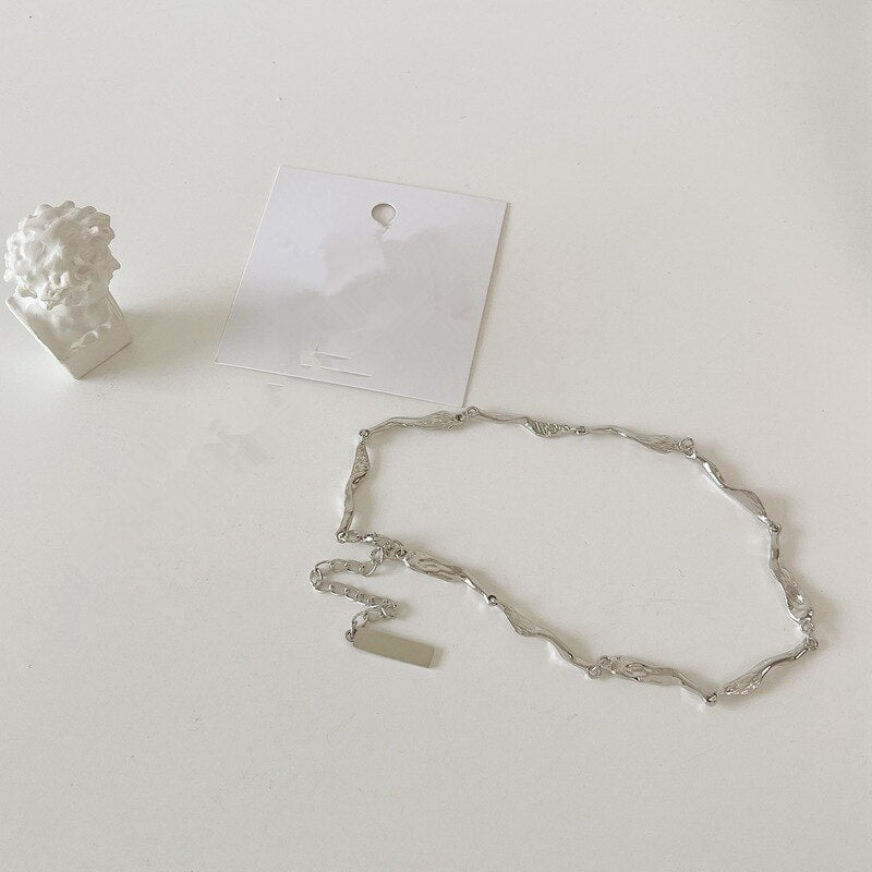 FFLACELL Metal Wave Clavicle Chain Irregular Geometric Hollow Cross Necklace Female Party Accessories