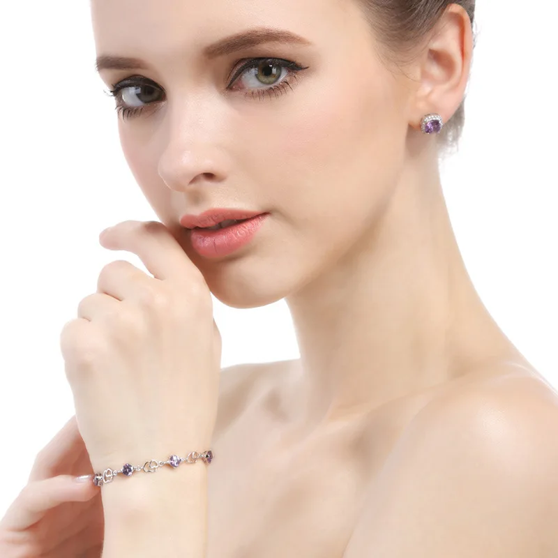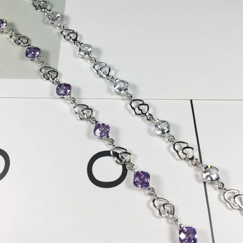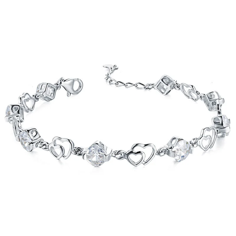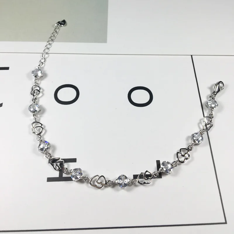 Fine 100% 925 Sterling Silver Bangles Heart connected zircon For Women Bracelets Prevent Allergy Silver Jewelry Gifts