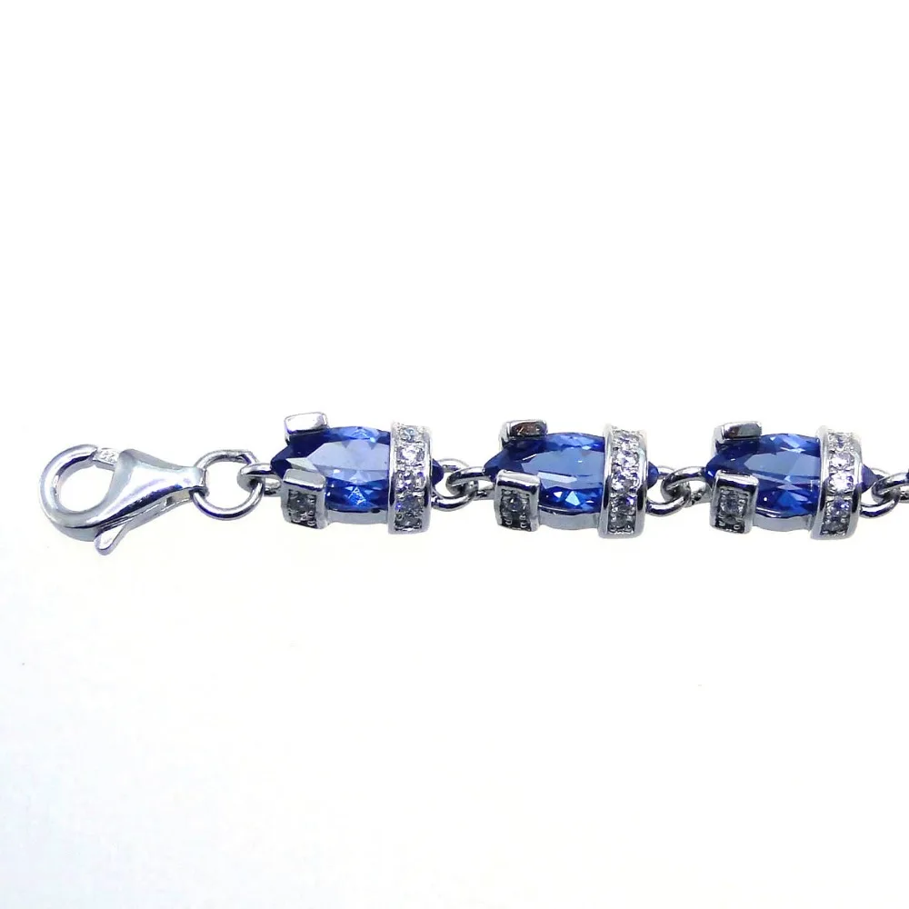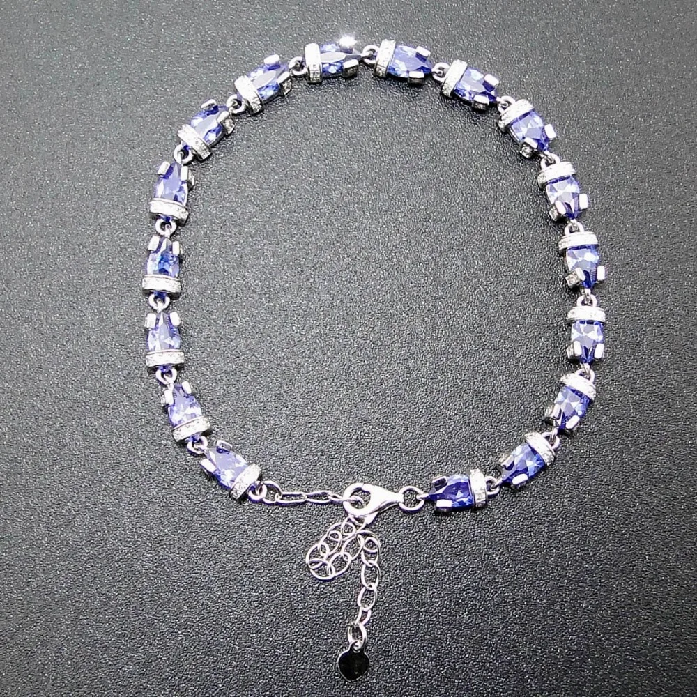 Fine Jewelry 100% 925 Sterling Women Jewelry Silver Bracelet with Tanzanite Color Stone DR01407207B 7+1extension Chian as gift