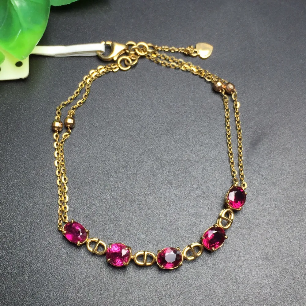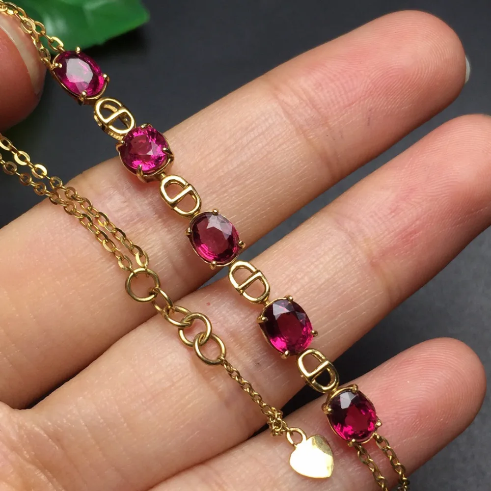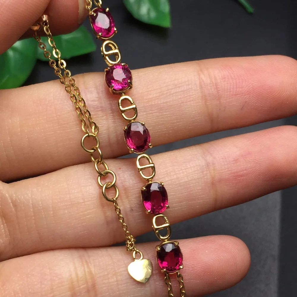 Fine Jewelry Real 18K Rose Gold AU750 G18K 100% Natural Brazil Tourmaline Gemstones Jewellery Bracelets for women Fine Bracelet