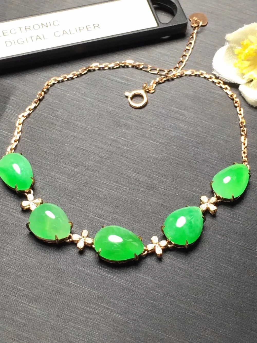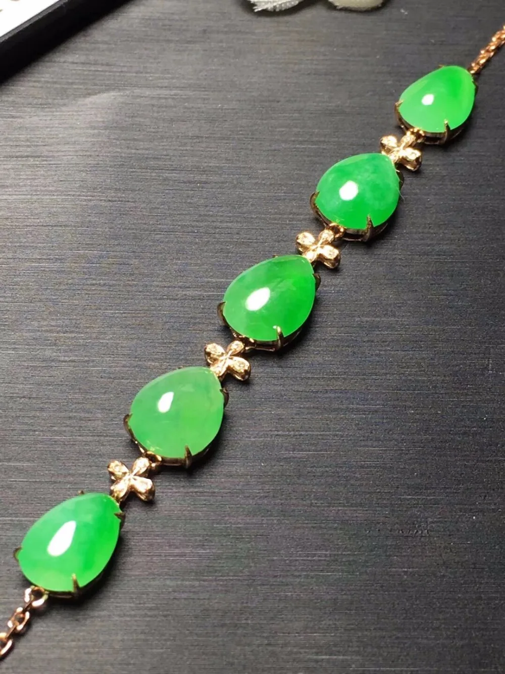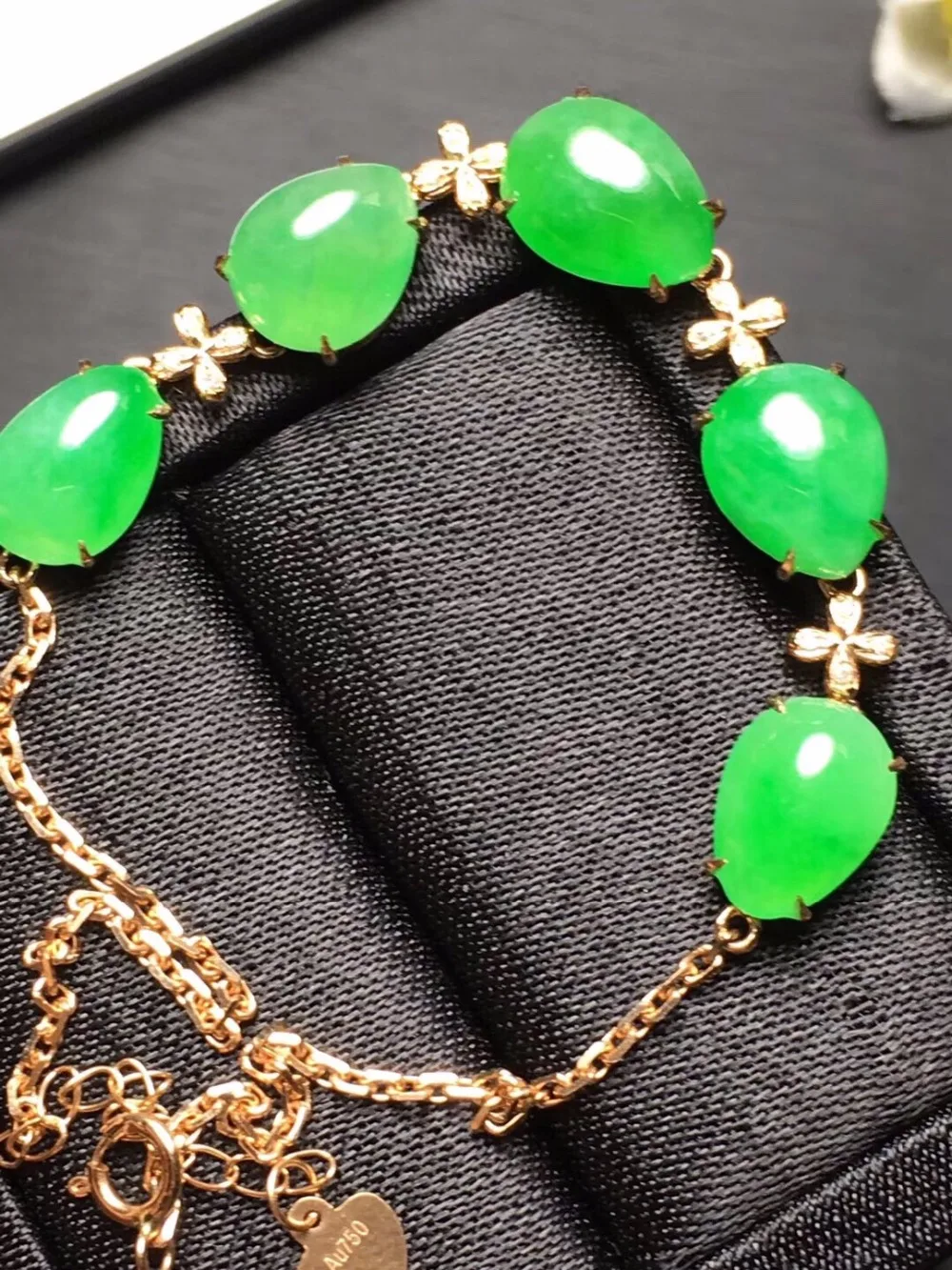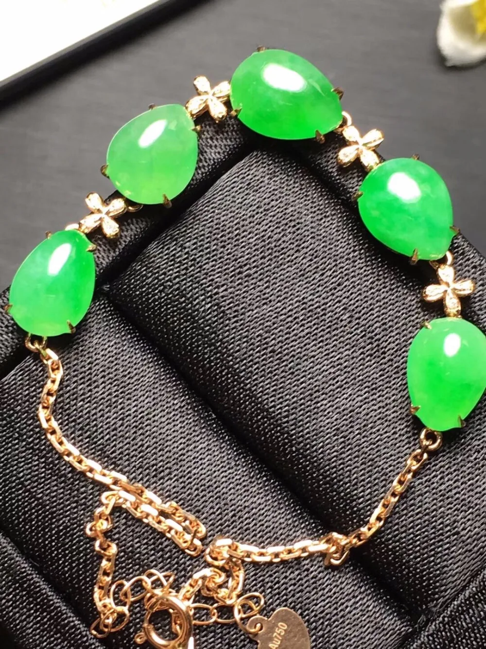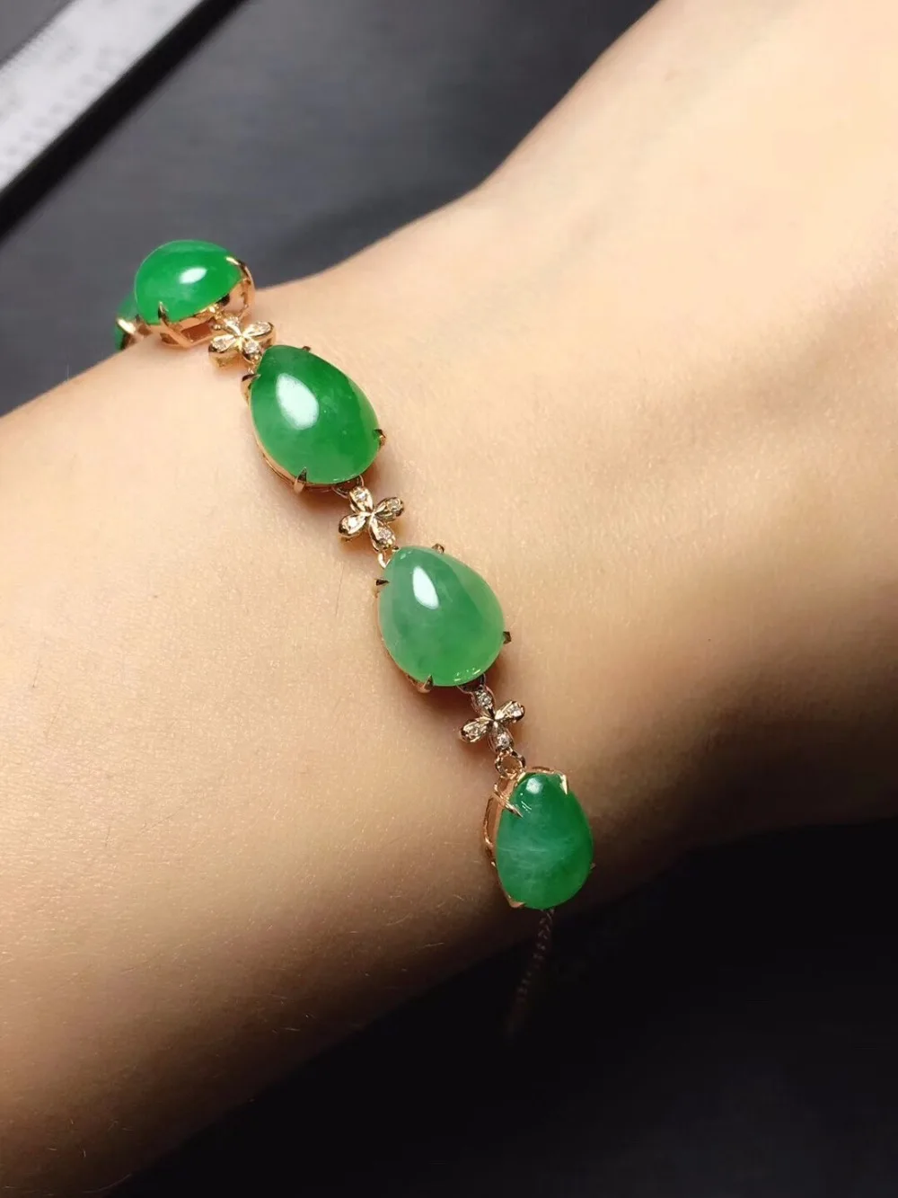 Fine Jewelry Real 18K Rose Gold AU750 Myanmer Origin Natural Green Jade Gemstone Female Bracelets for Women Fine Bracelets