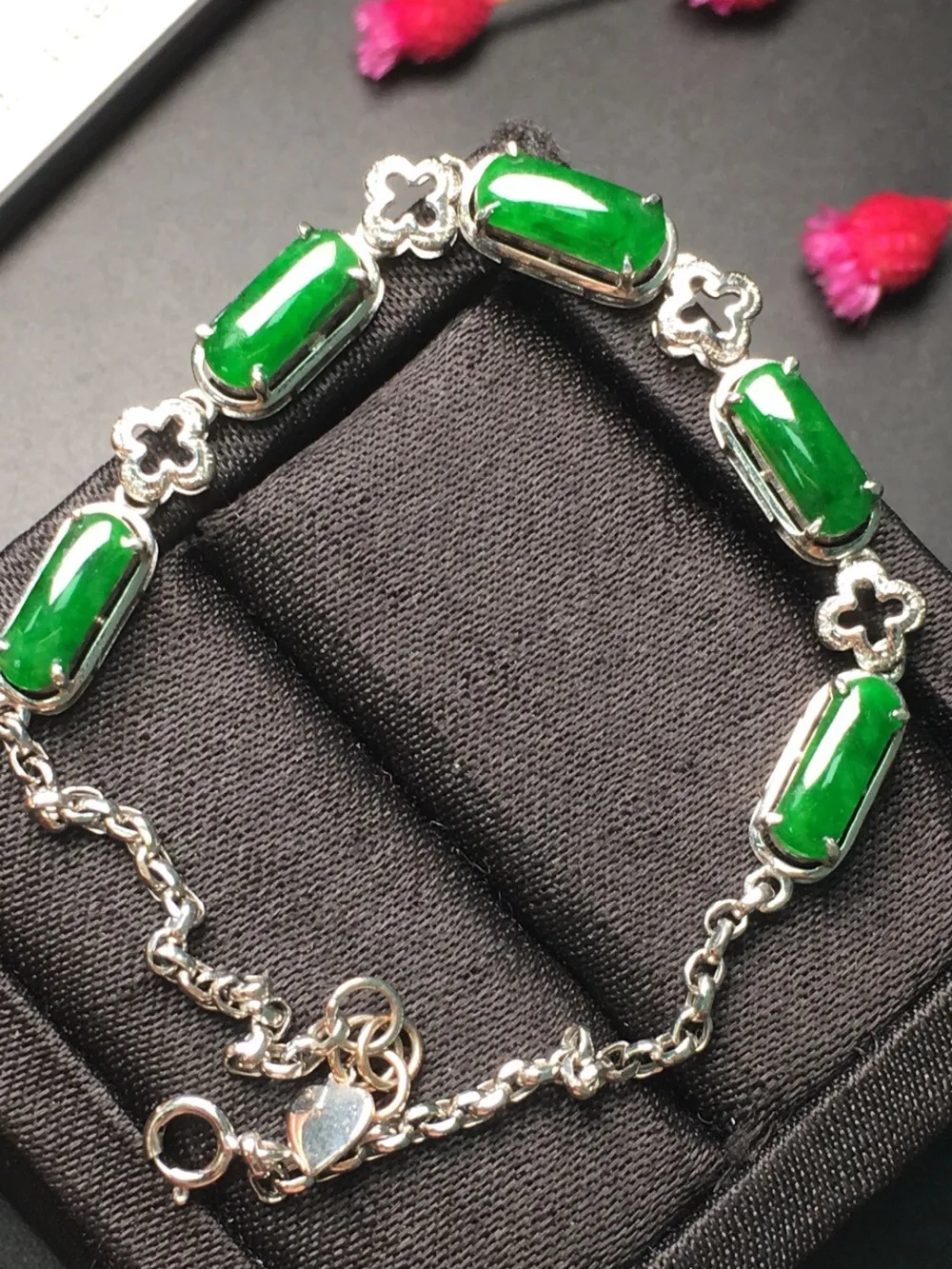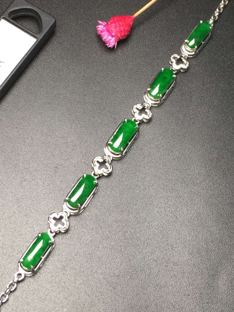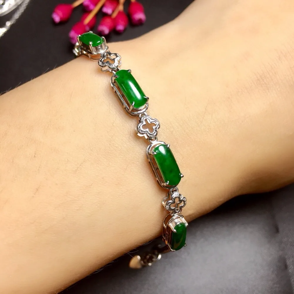 Fine Jewelry Real 18K Rose Gold AU750 Myanmer Origin Natural Green Jade Gemstone Female Bracelets for Women Fine Bracelets
