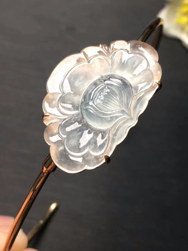 Fine Jewelry Real 18K Rose Gold Natural burma jade bangle bracelet jade naturelle jonc myanmar jade bracelet Certificate
