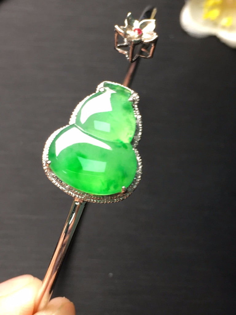 Fine Jewelry Real 18K Rose Gold Natural burma jade bangle bracelet jadite naturelle jonc myanmar jade bracelet Certificate