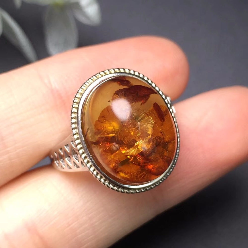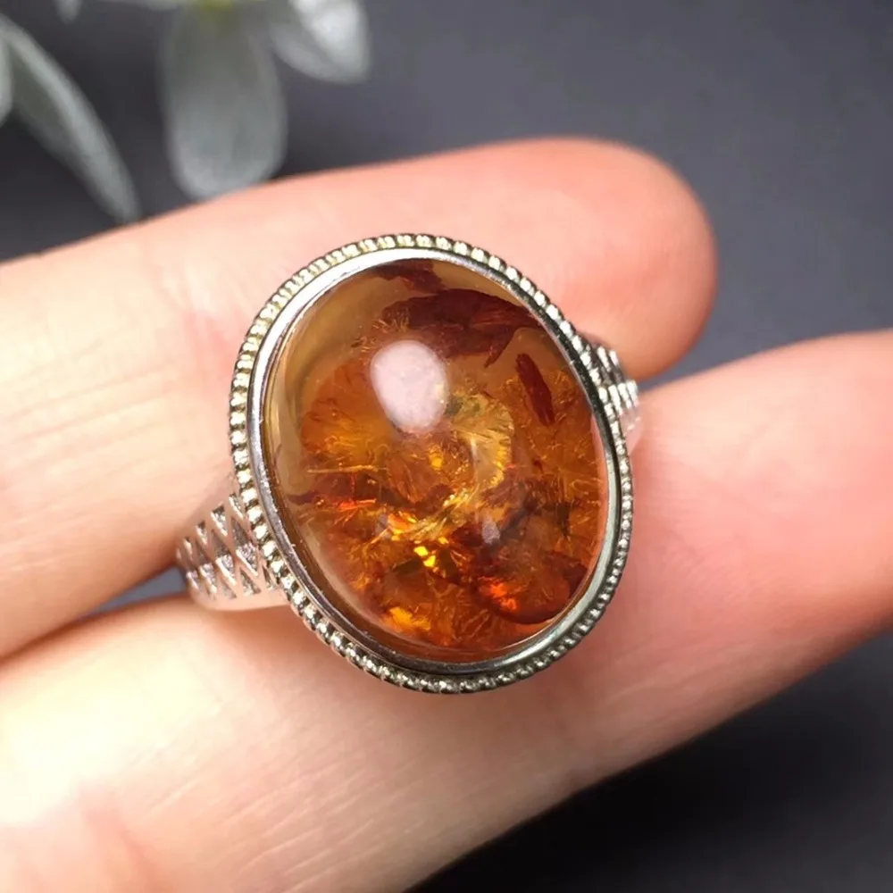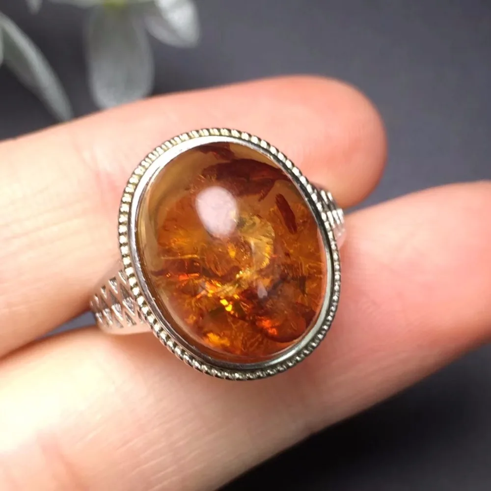 Fine Jewelry Real 925 Steling Silver s925 100% Natural Flower Amber Gemstones Female Rings Christmas Gift