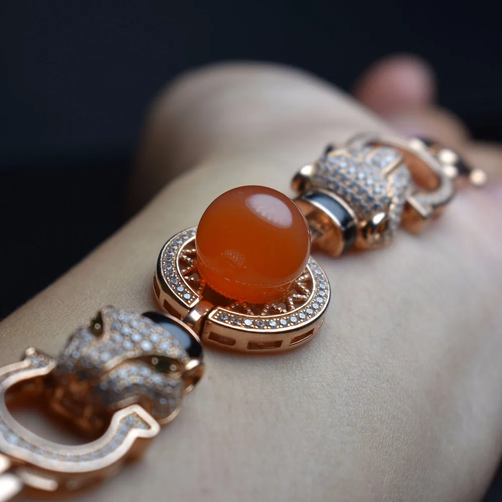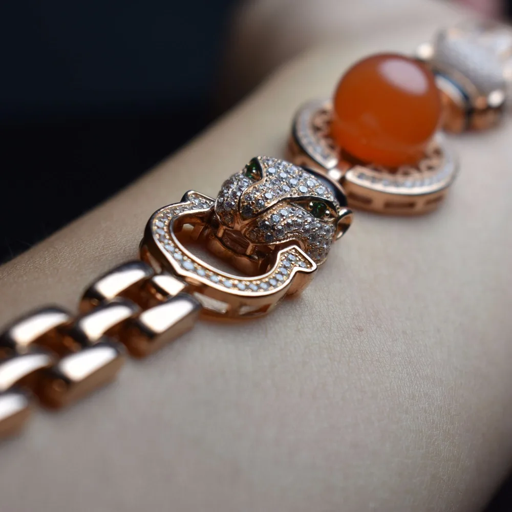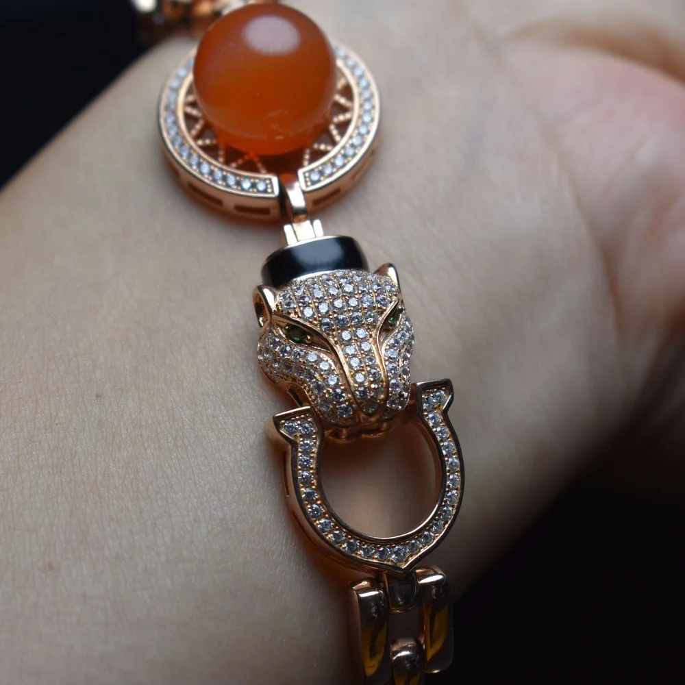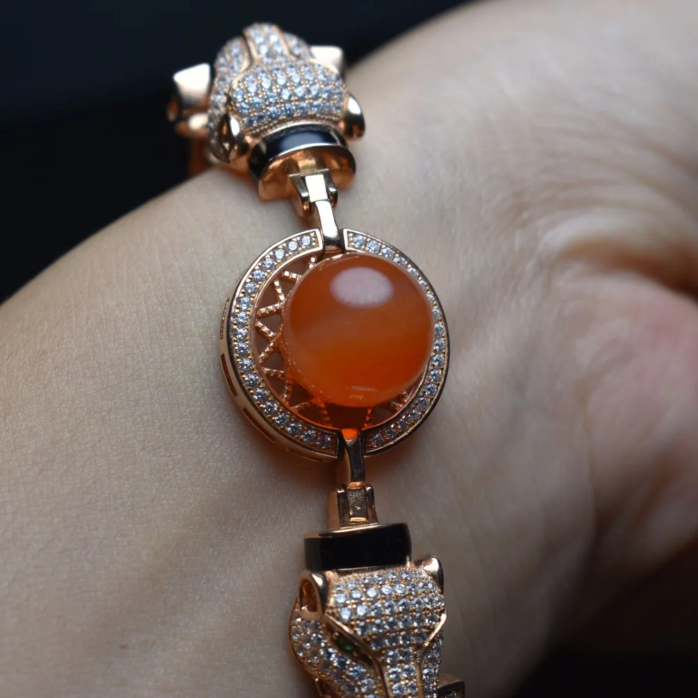 Fine Jewelry Real 925 Steling Silver s925 100% Natural Red Agate Gemstone Leopard Unisex Bracelets Christmas Gift
