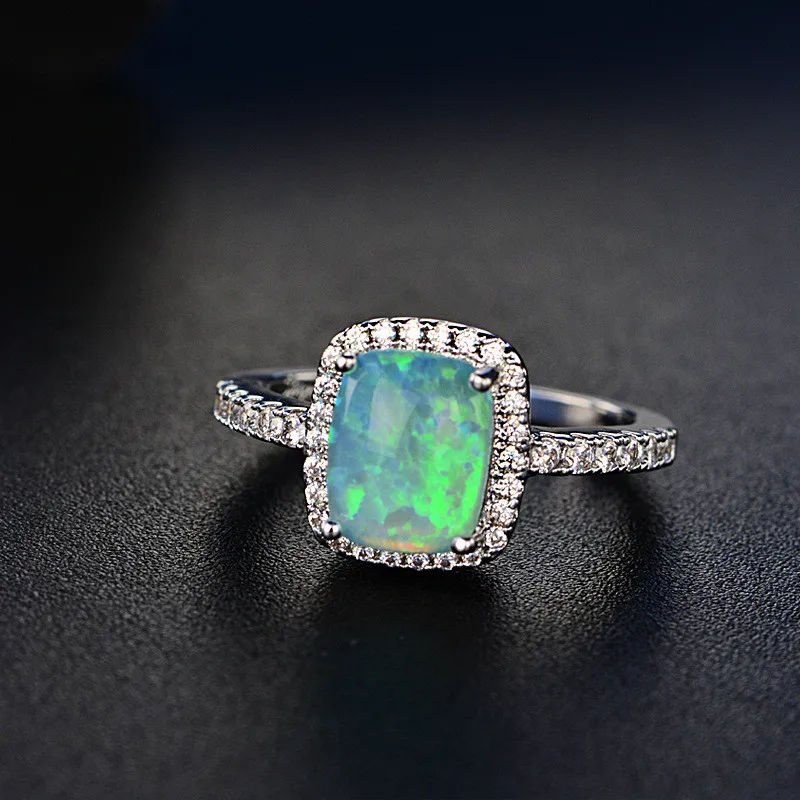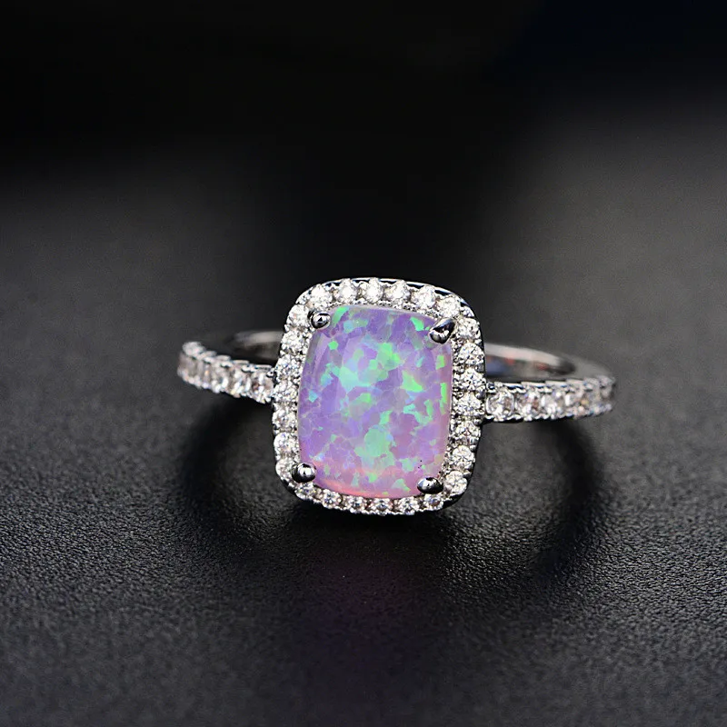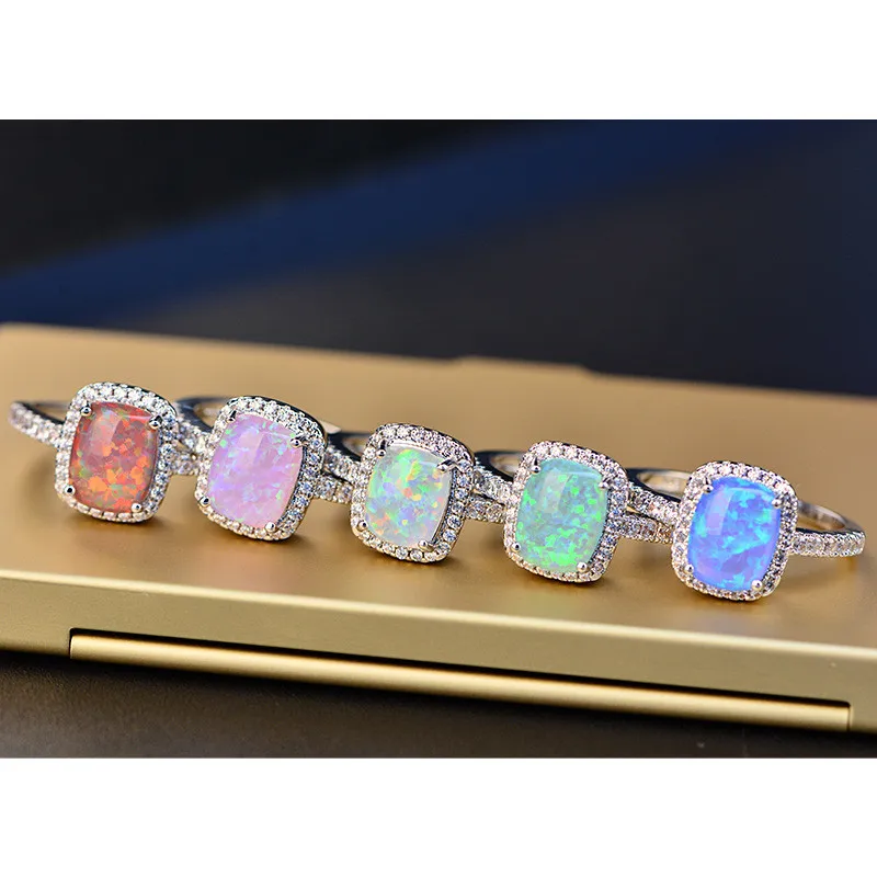 Fine Jewelry Wedding Rings For Women Silver S925 Sterling Opal Multicolor Square Cubic Zirconia Stone Ringen Bridal Bijouterie