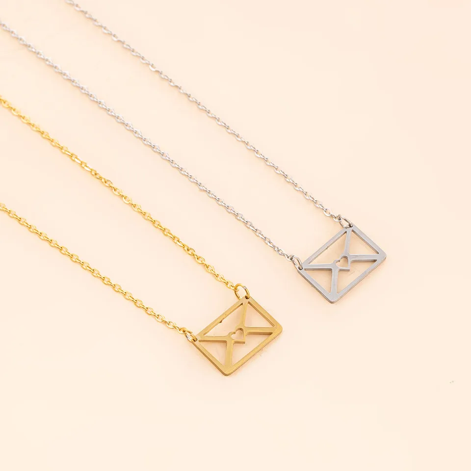 Fine Love Heart Envelope Letter Gold Choker Necklace Stainless Steel Necklaces Pendant Charms Minimalist Jewelry Gifts