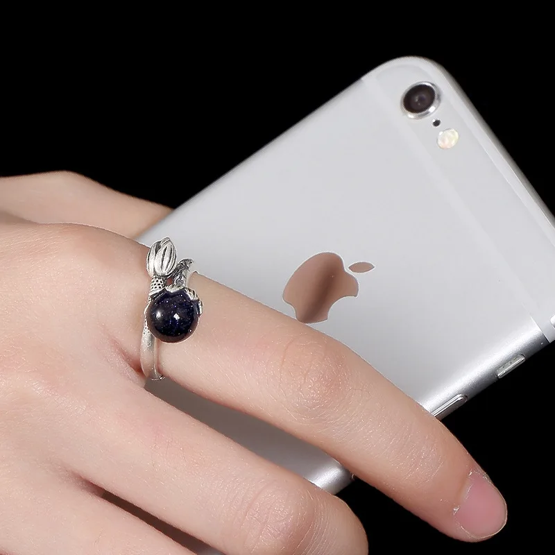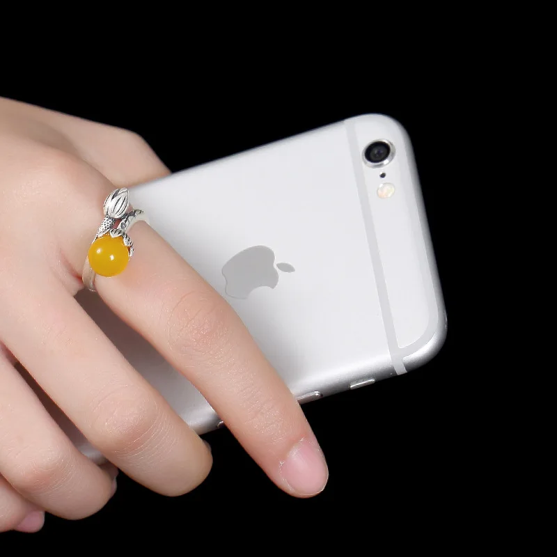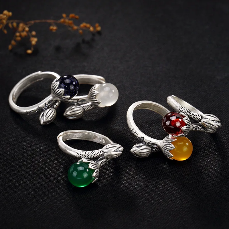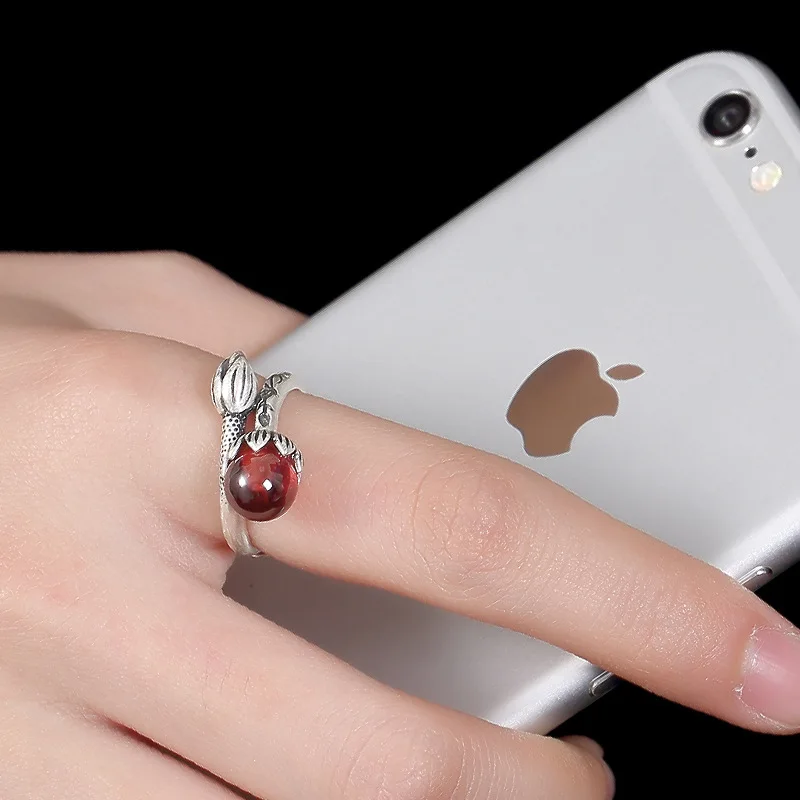 fine silver inlaid restoring ancient ways chalcedony agate pomegranate red round bead ms lotus opening ring