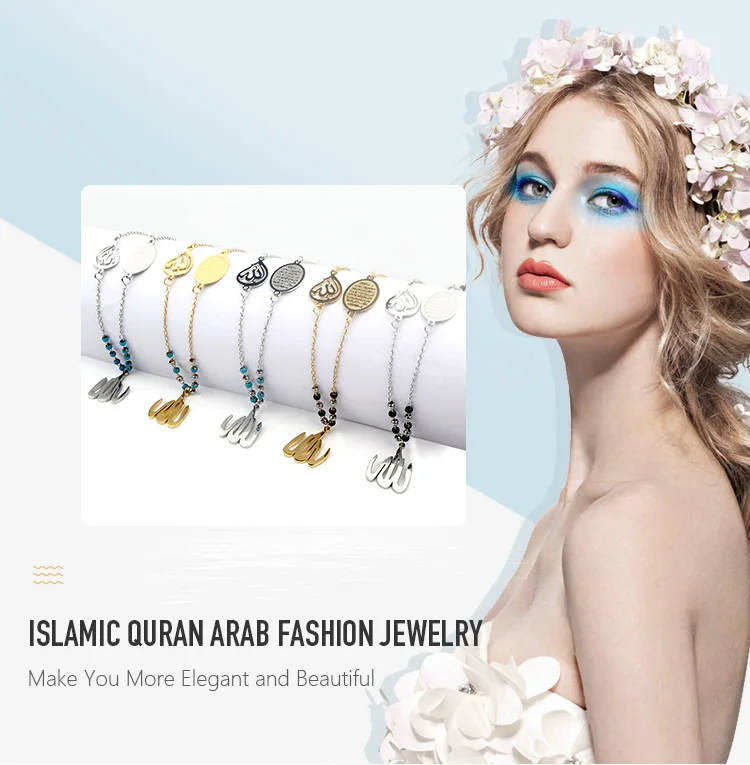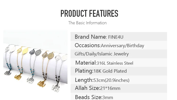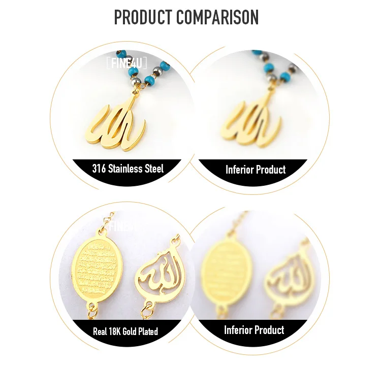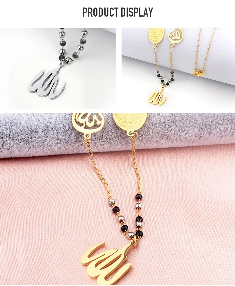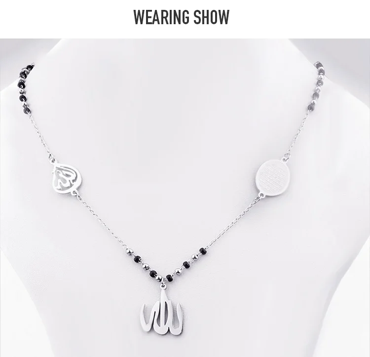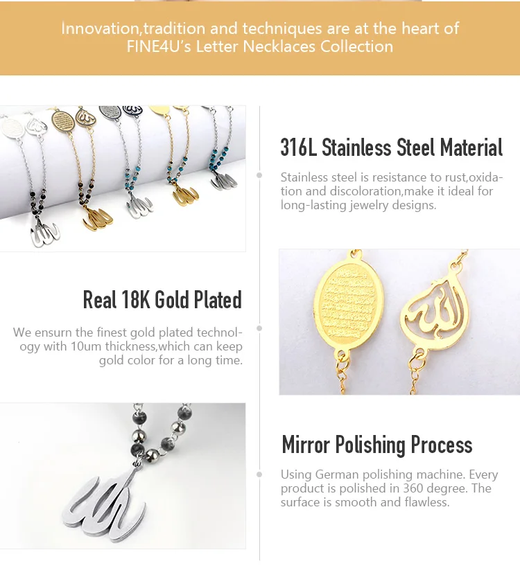 FINE4U N685 Muslim Pendant Necklace Stainless Steel 3mm Beads Chain Necklace Islamic Quran Arab Jewelry