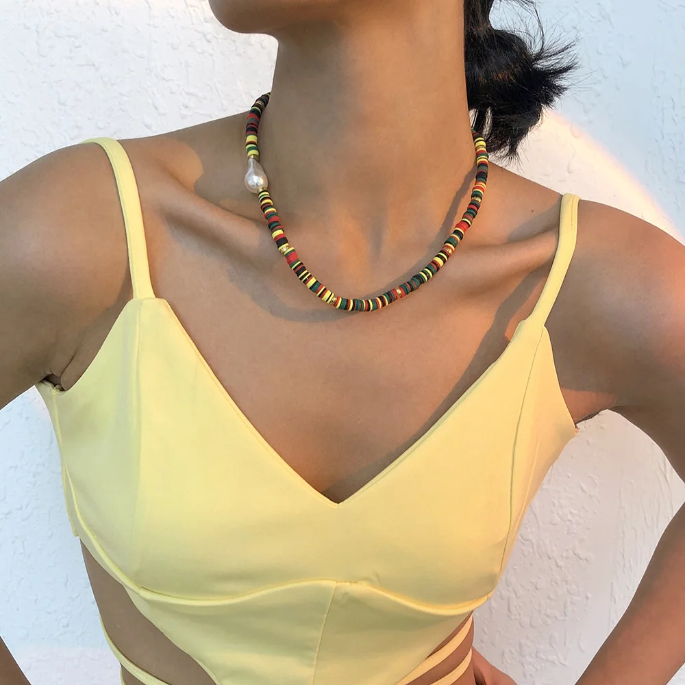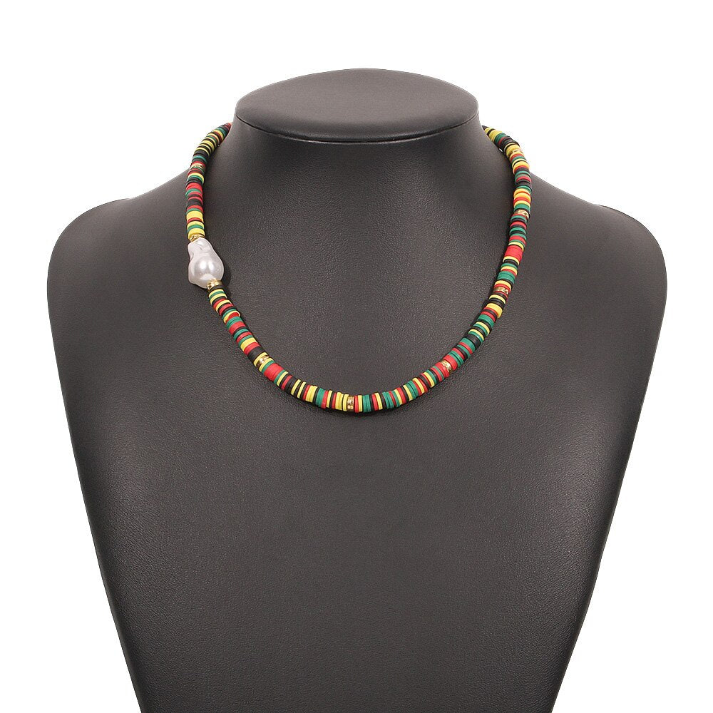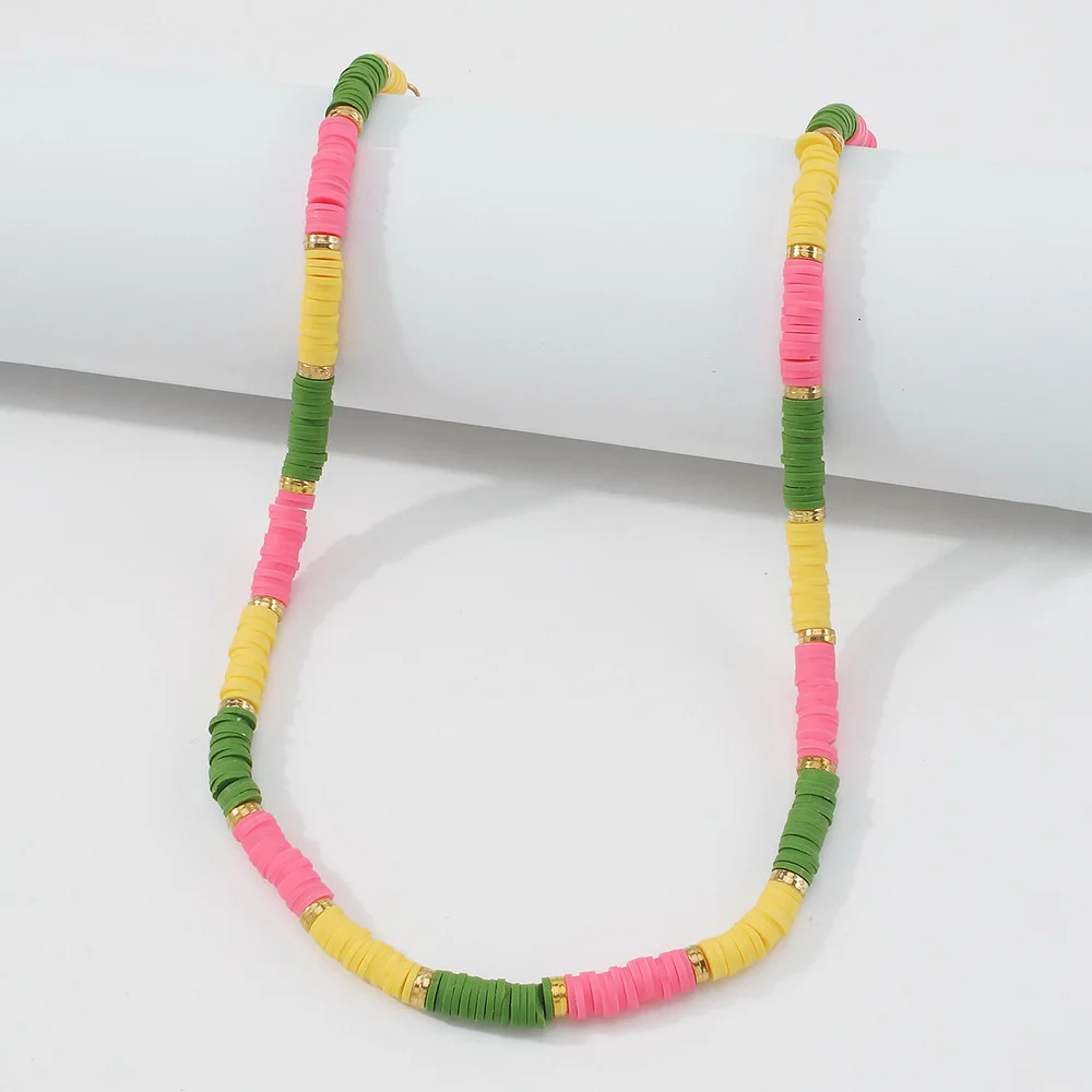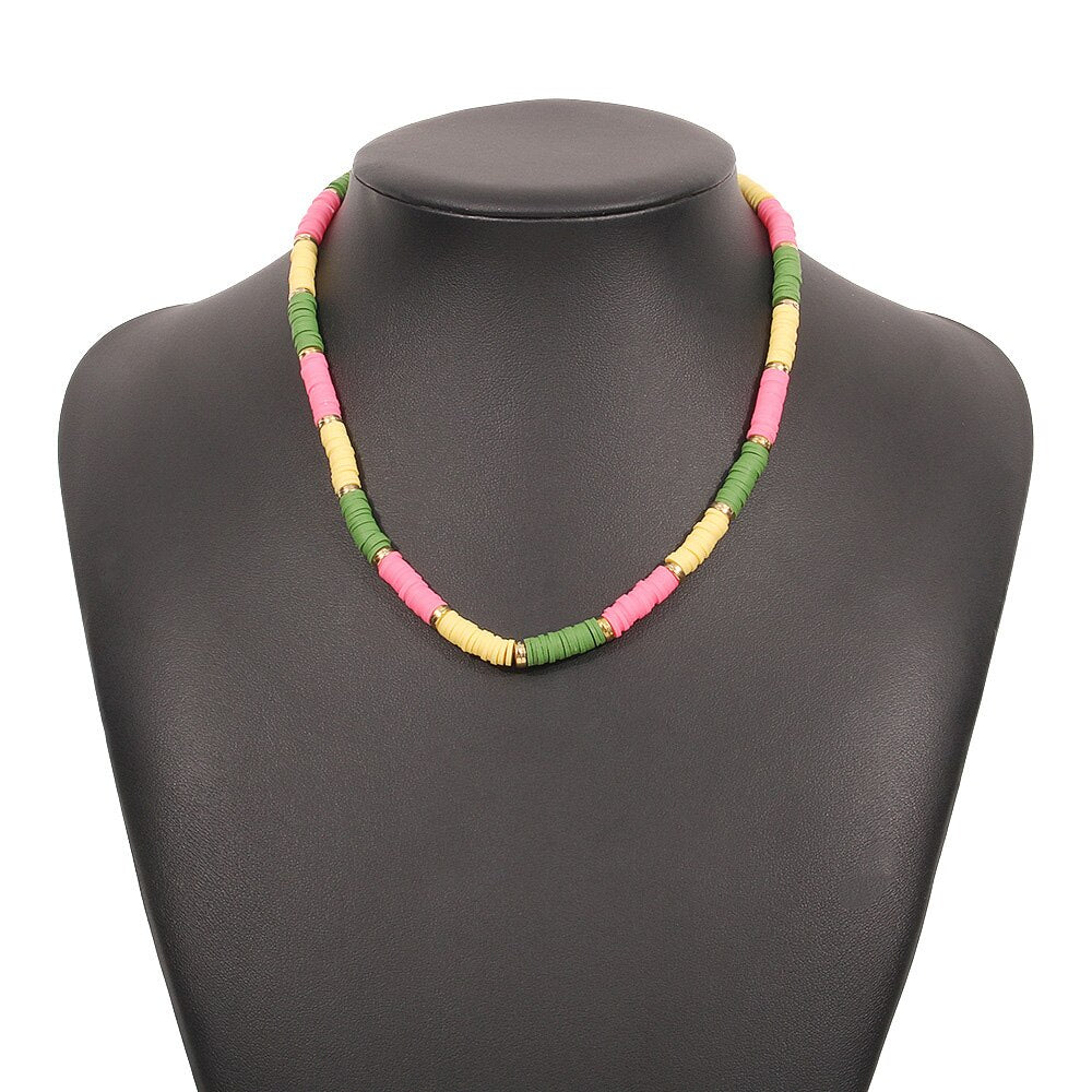 FINE4U N954 Heishi Surfer Necklace Boho Bohemian Bead Choker African Vinyl Beads Necklace for Women Girls