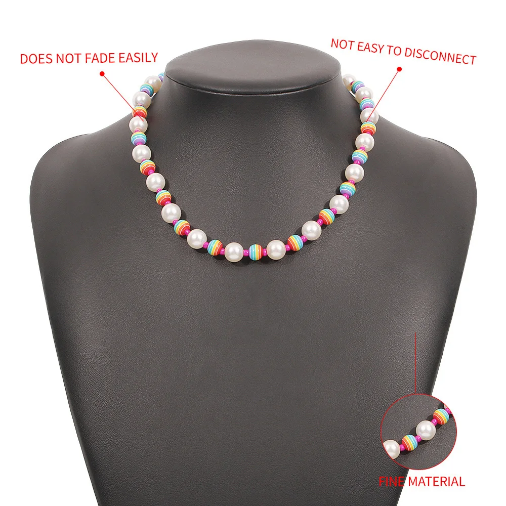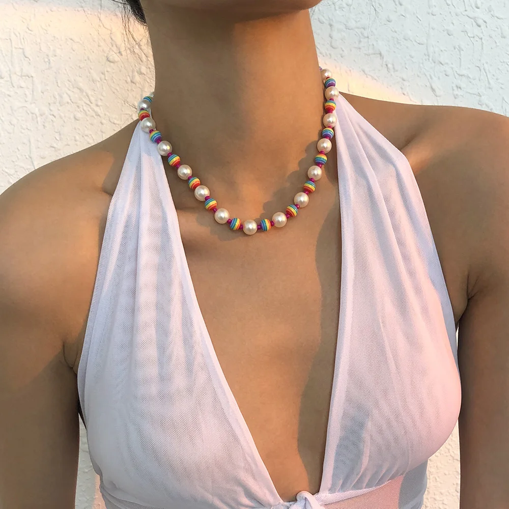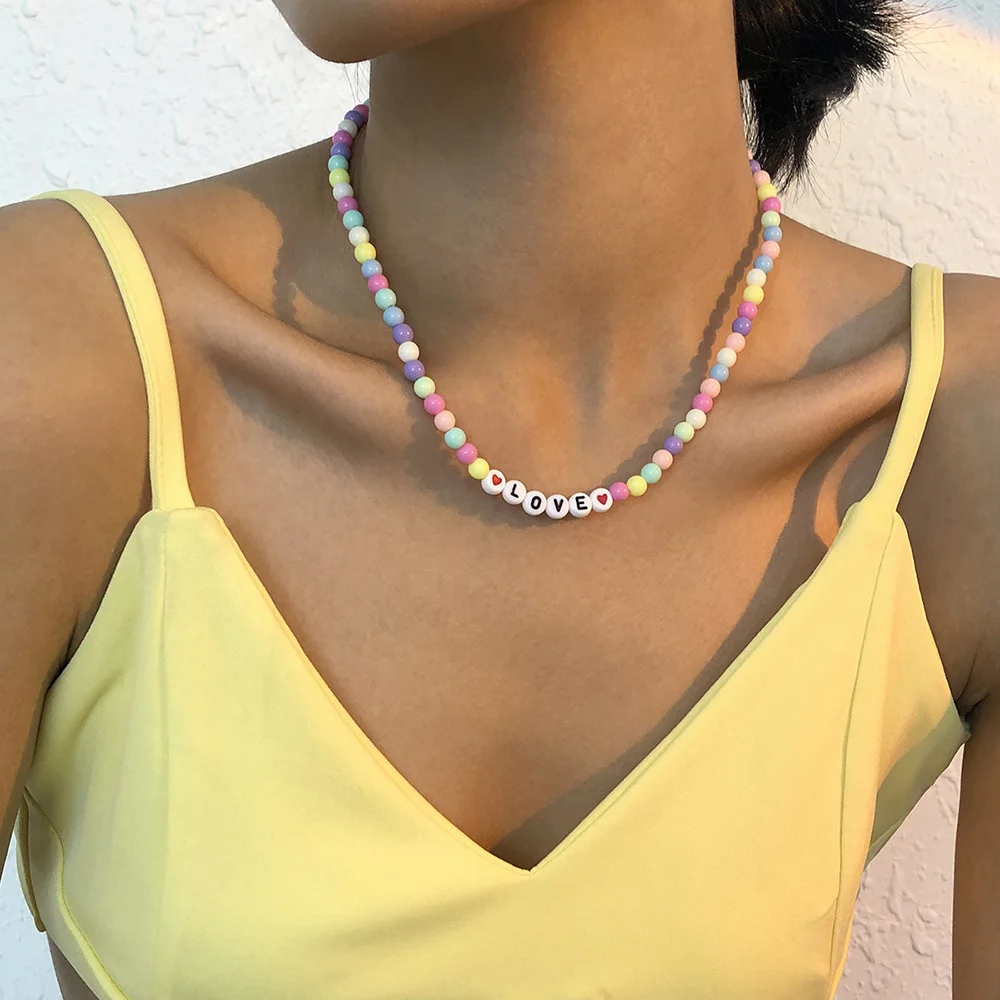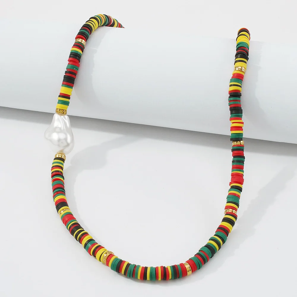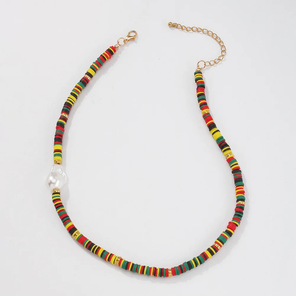 FINE4U N954 Heishi Surfer Necklace Boho Bohemian Bead Choker African Vinyl Beads Necklace for Women Girls