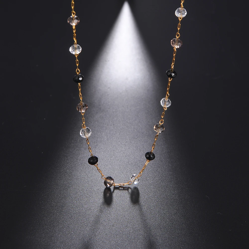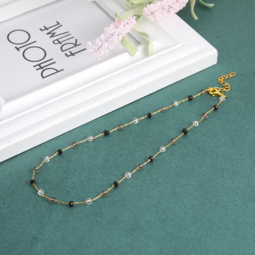 Fishhook Crystal Black Pure Short Choker Necklace Rose Gold Color Boho Bohemia Gift For Woman Girl Chain Necklaces Jewelry
