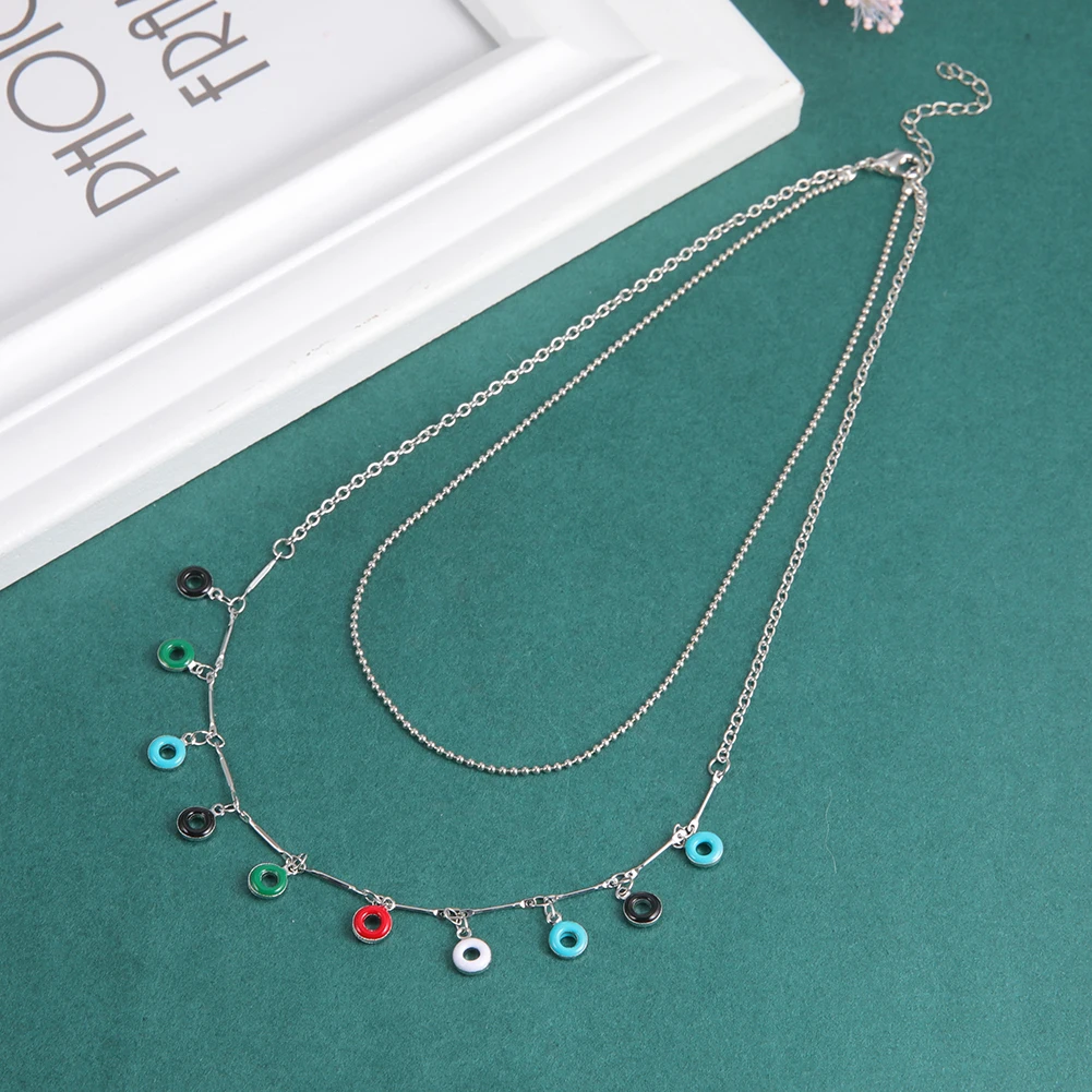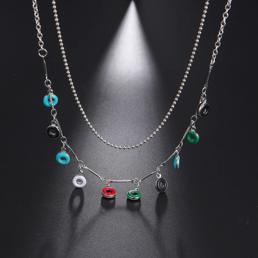 Fishhook Doughnut Donuts Short Choker Double Necklace Enamel Rose Gold Color Boho Bohemia Gift For Woman Girl Chain Jewelry