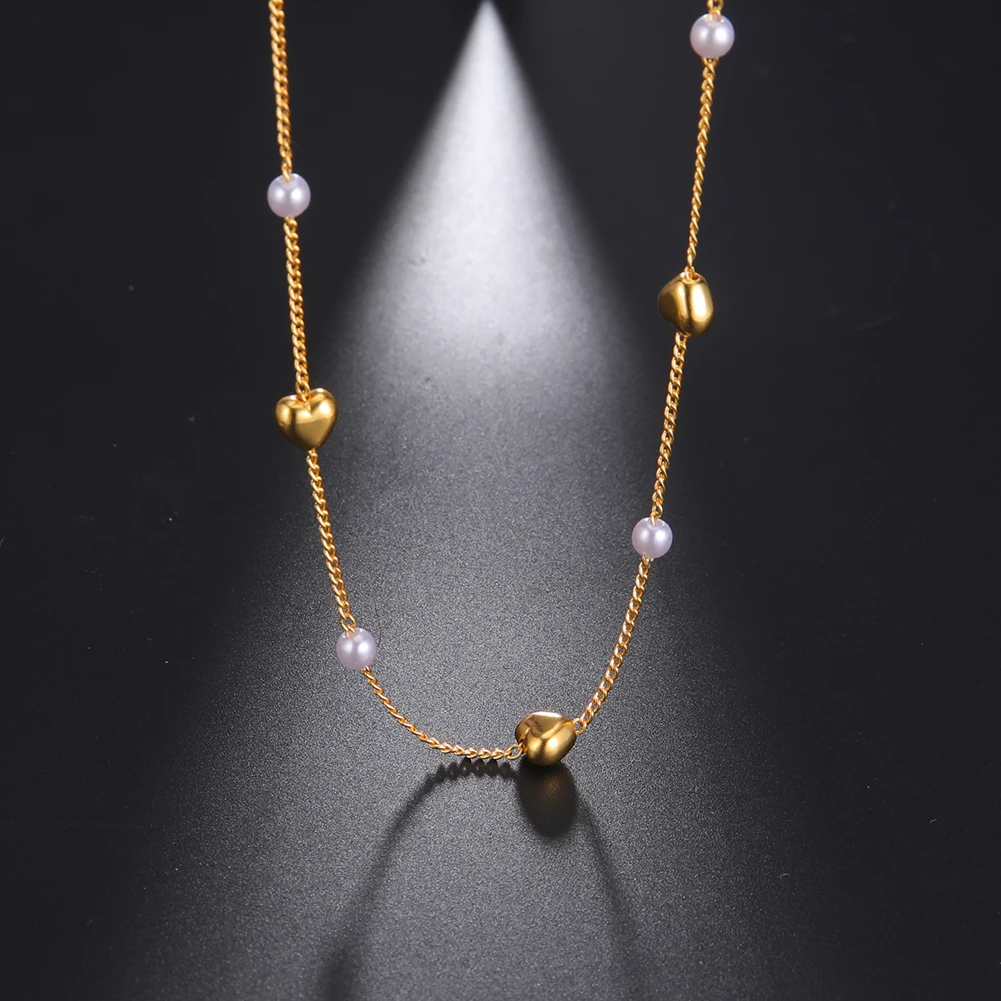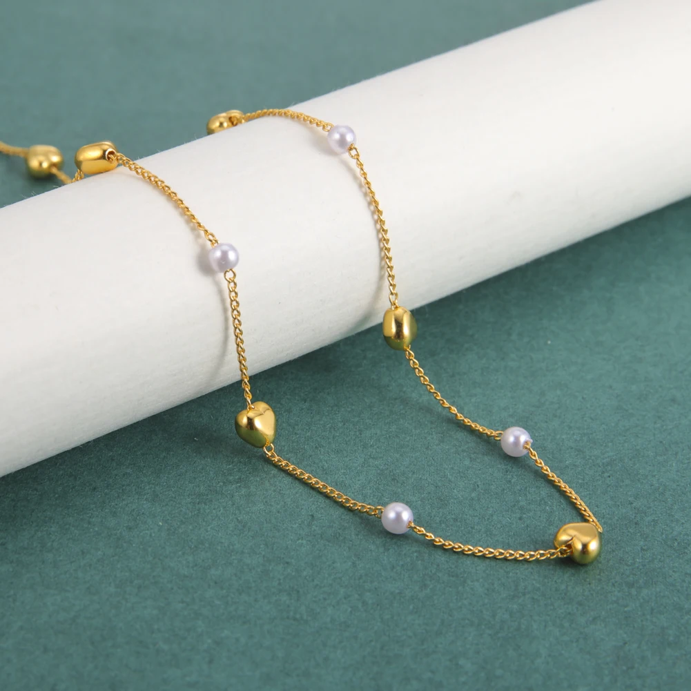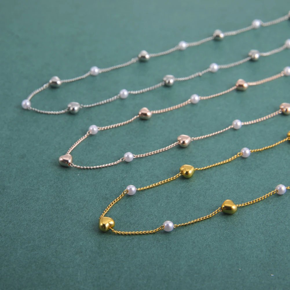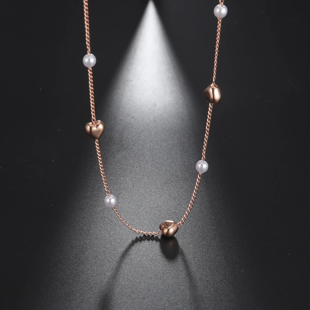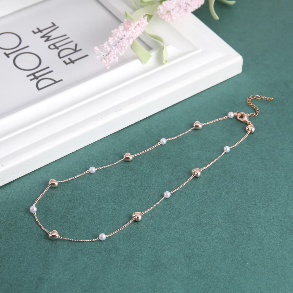 Fishhook Heart Copper White Pearl Beads Short Choker Necklace Rose Gold Color Boho Bohemia Gift For Woman Girl Chain Jewelry New