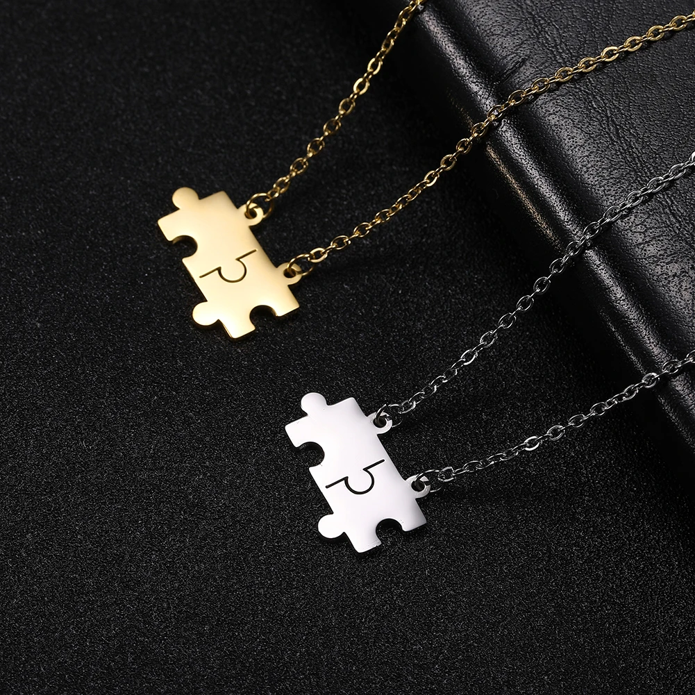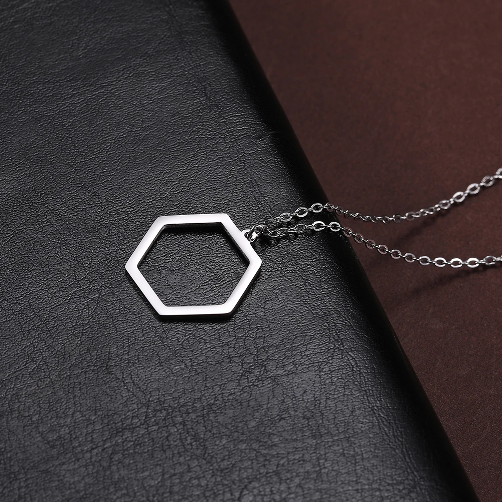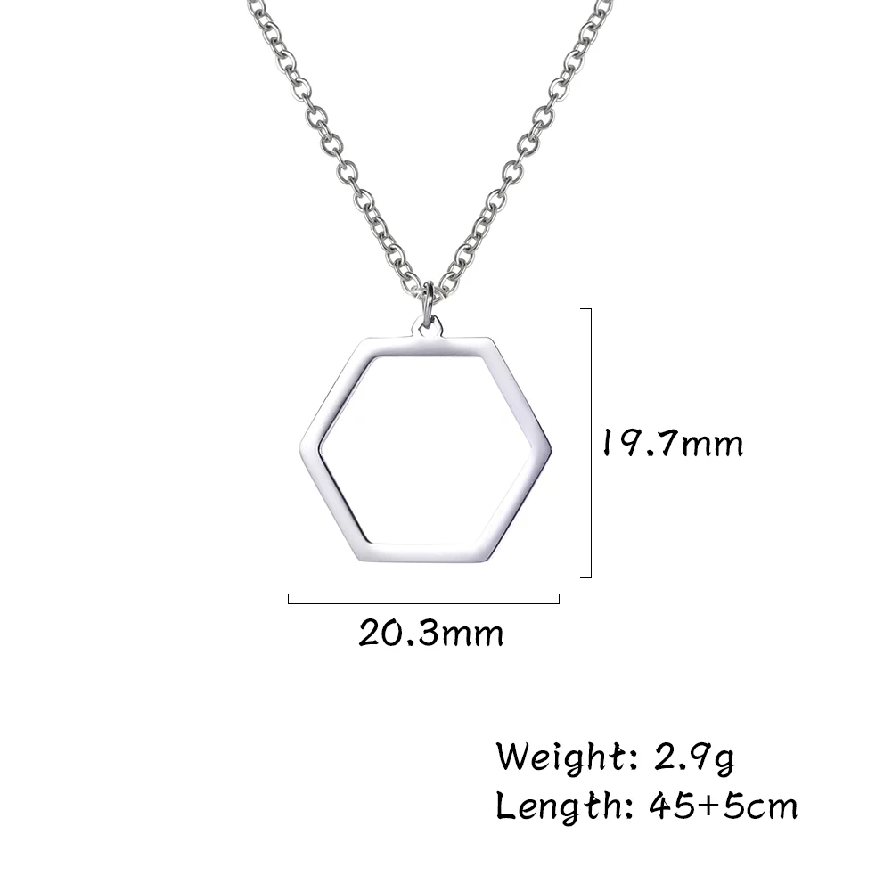Fishhook Jigsaw Puzzle Hollow Hexagon Circle Necklace Small Gold Color Stainless Steel Women Girl Man Lover Pendant Gift Jewelry