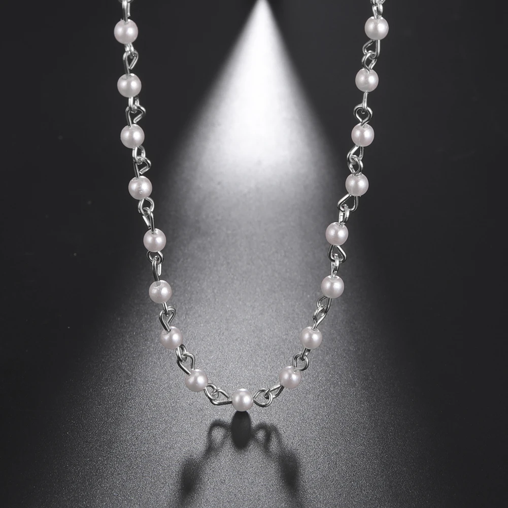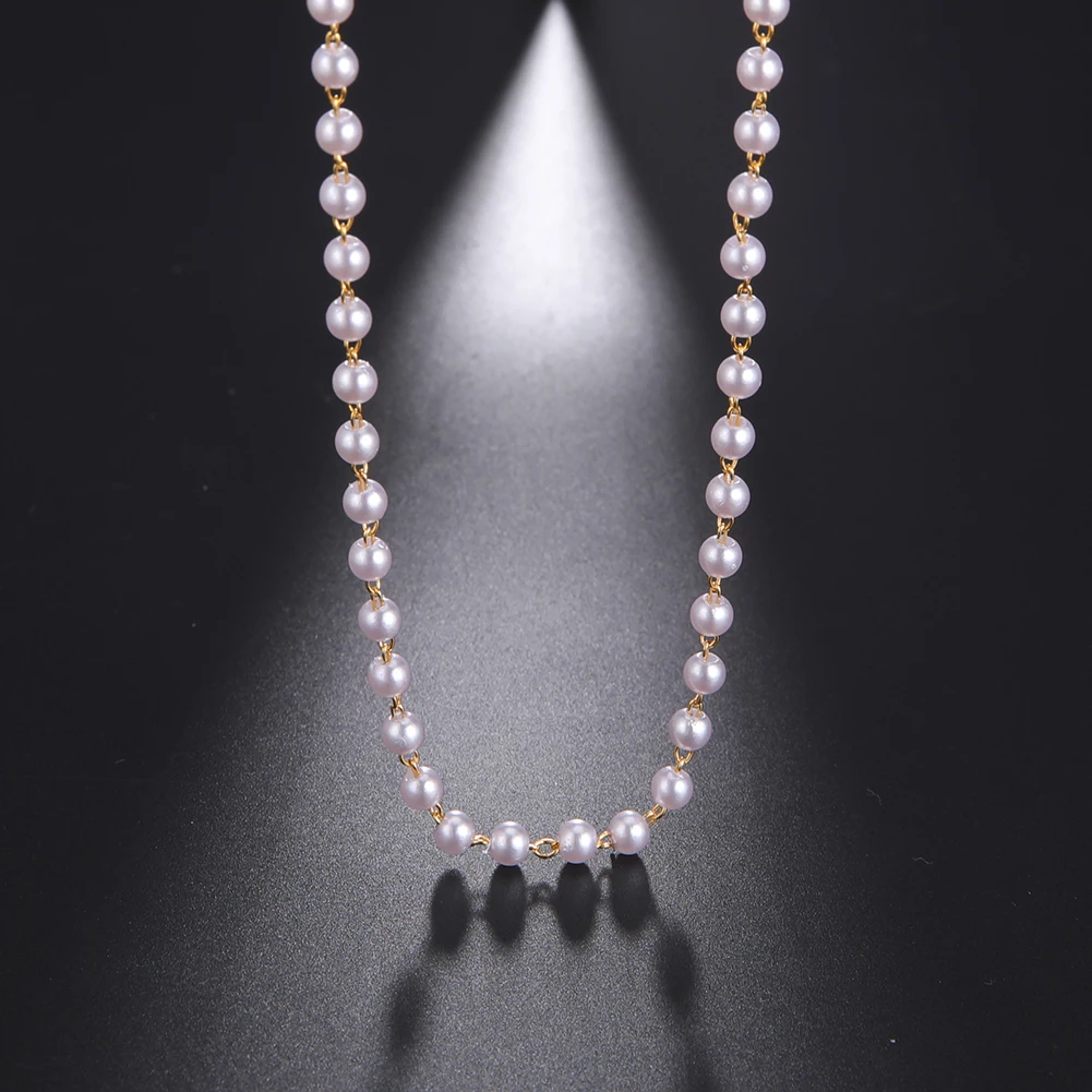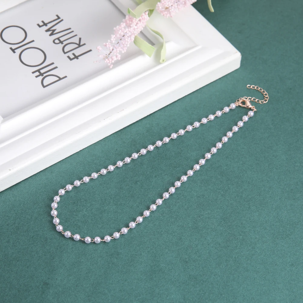 Fishhook Short Choker Necklace White Pearl Beads Rose Gold Color Boho Bohemia Gift For Woman Girl Chain Necklaces Jewelry