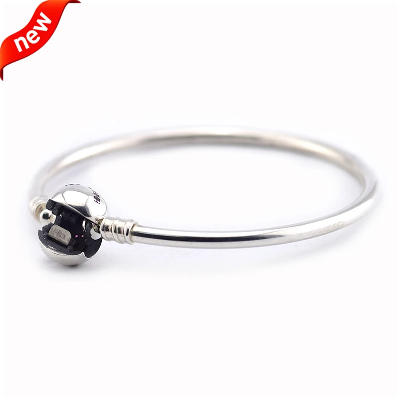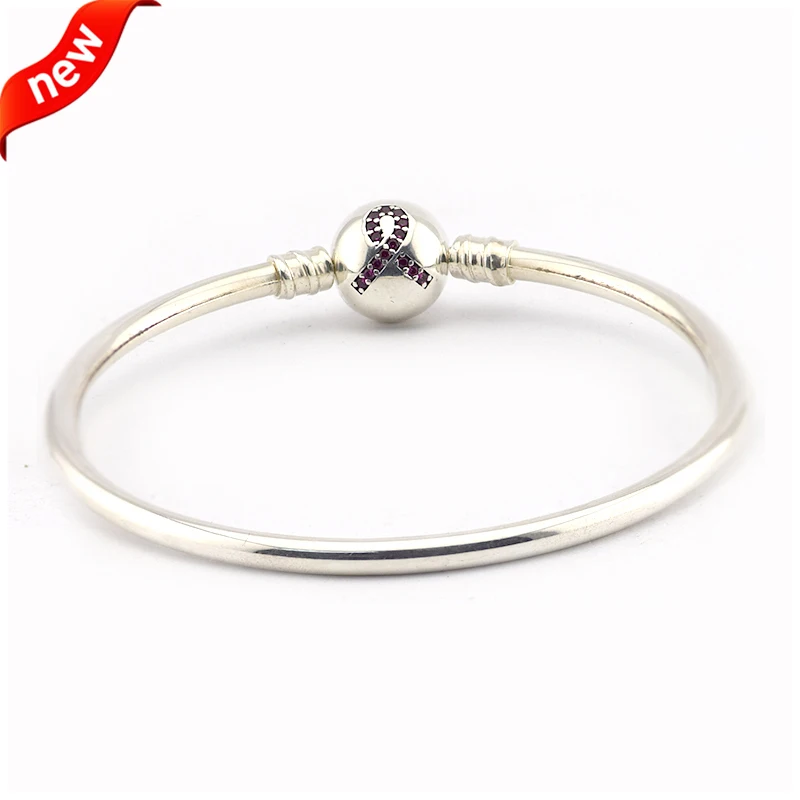 925 Sterling Silver Pink Ribbon Clasp Bangle Original Fashion Jewelry Making Fits For Beads & Charms