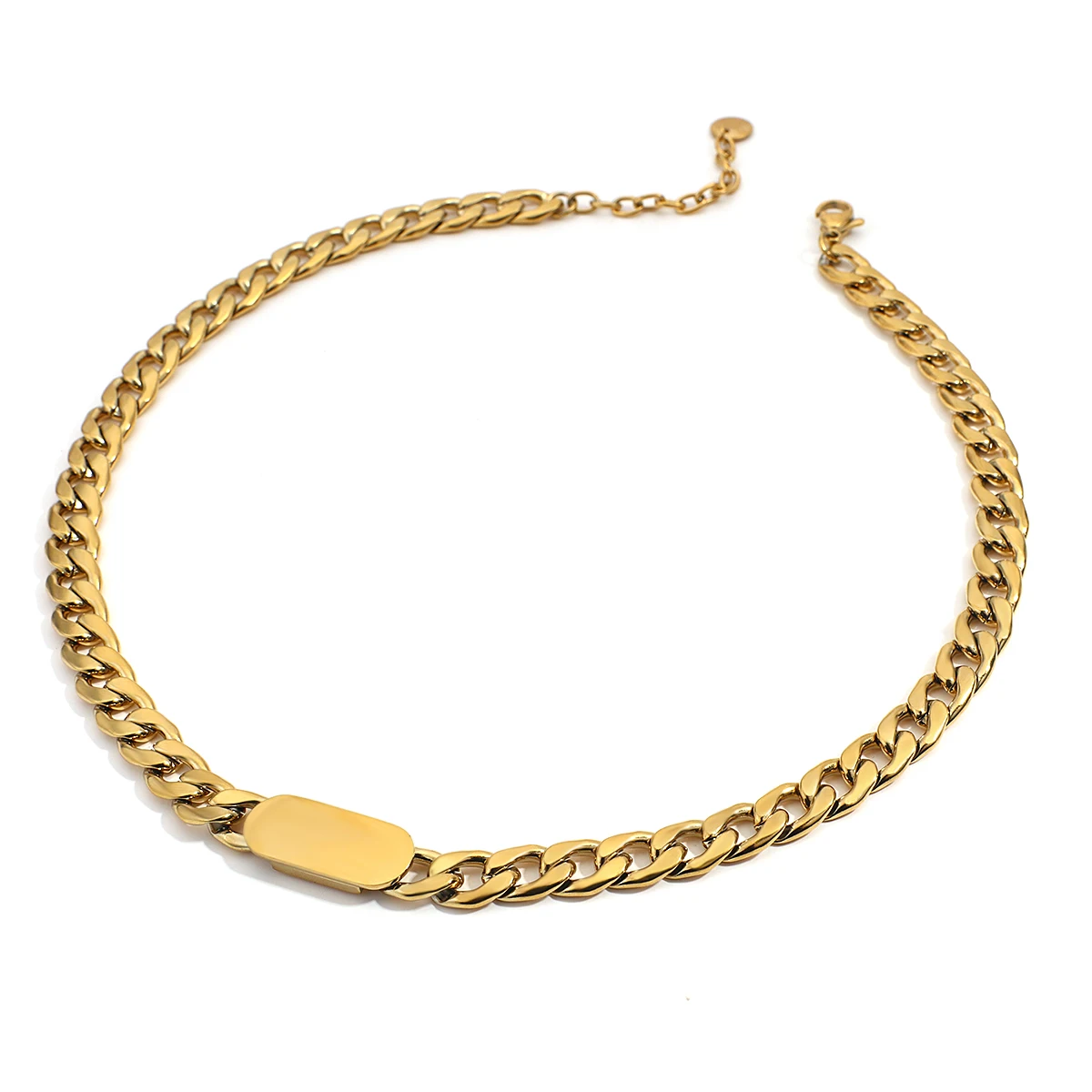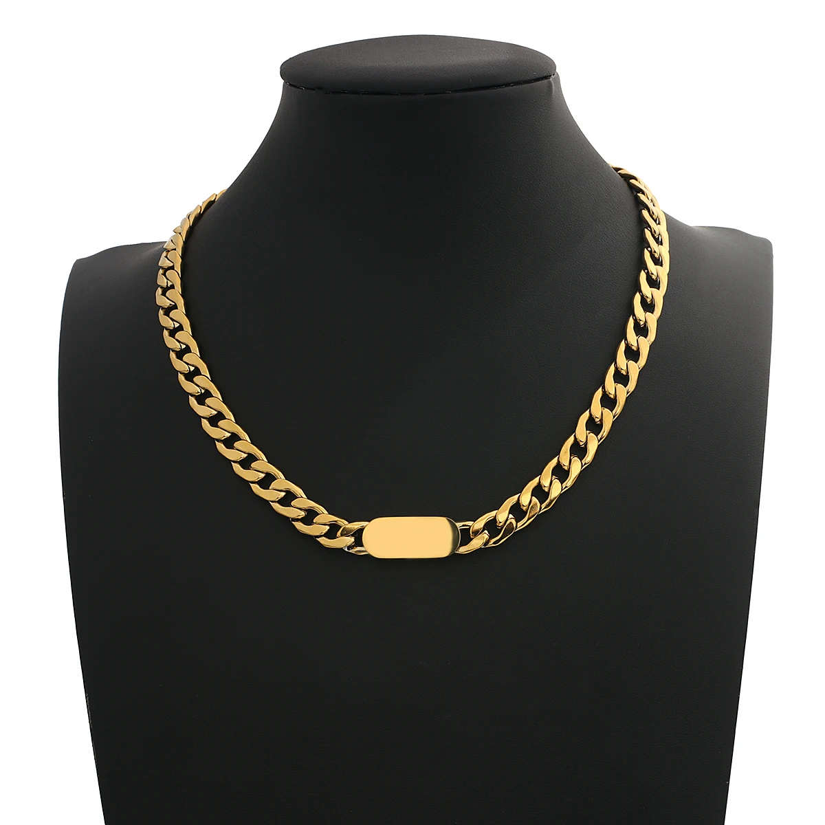 Flashbuy Trendy Gold Color Thick Chain Necklace for Women Stainless Steel Chunky Chain Choker Necklace Minimalist Couple Jewelry