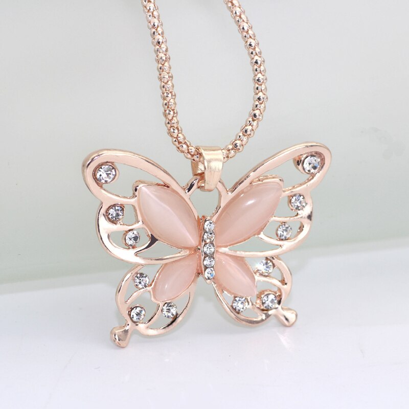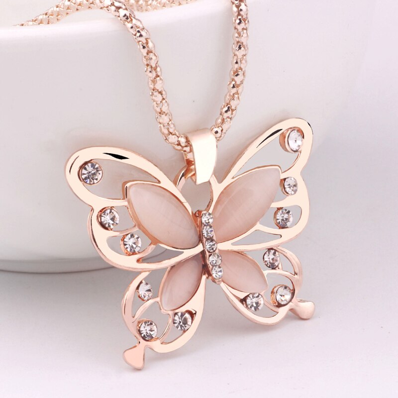 Flawless Women Lady Necklace Choker Pendent Rose Gold Opal Butterfly Pendant Exquisite Necklace Sweater Chain 2022