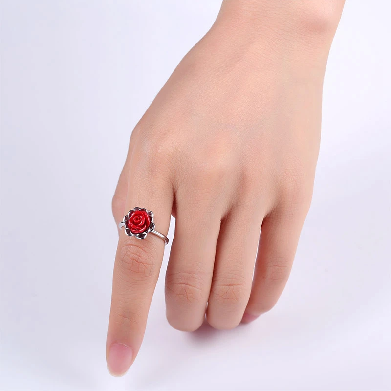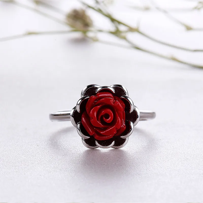 Flower Open Rings for Women Vintage Fashion Resin Roes Wedding 925 Sterling Silver Romantic Jewelry Gifts for Lover Dropshipping