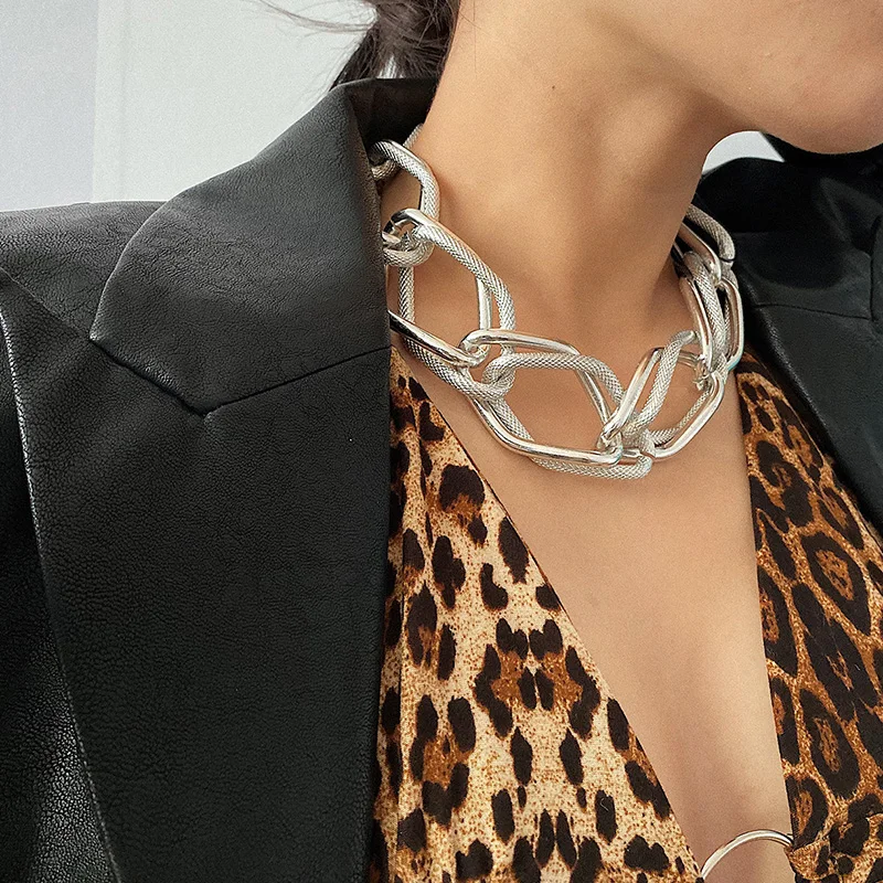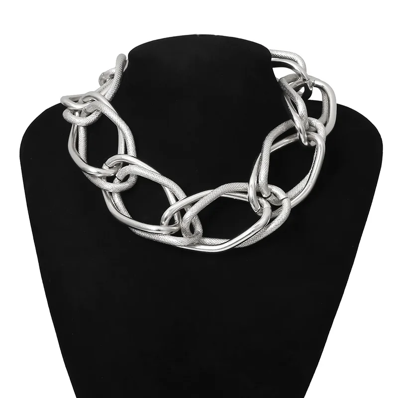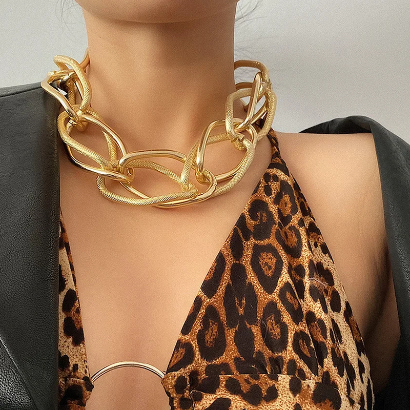 FLTMRH Punk Lock Choker Necklace Pendant Women Collar Statement Brand Gold Color Chunky Thick Chain Necklace Steampunk Men