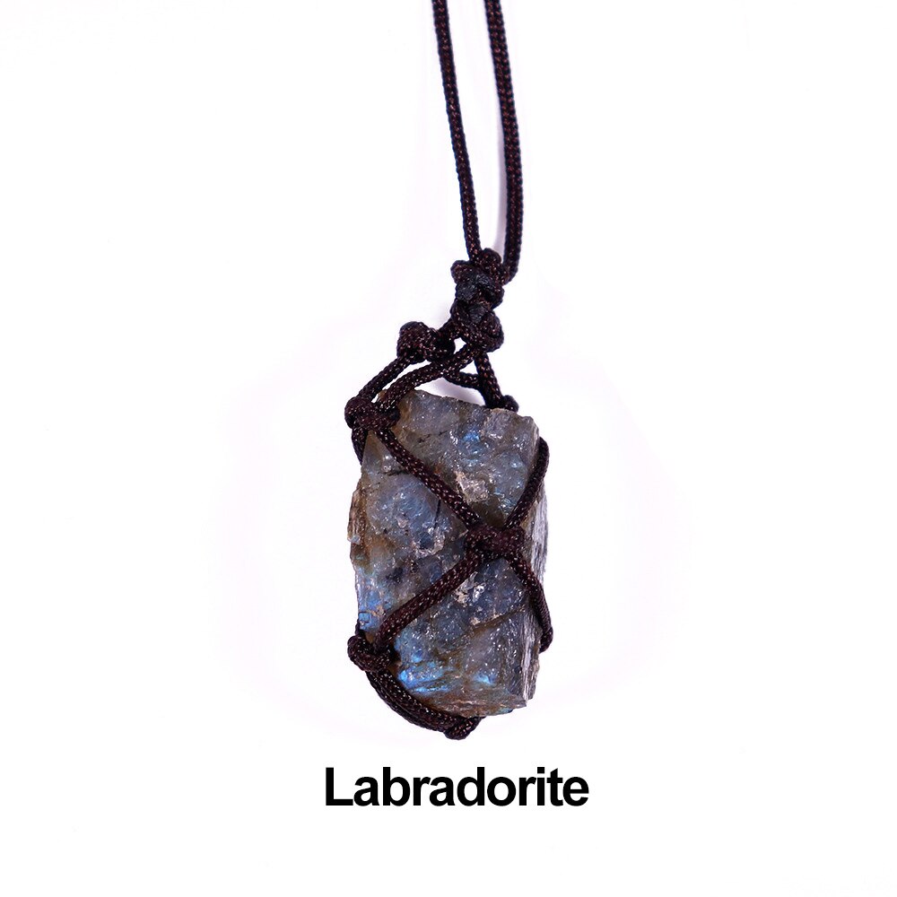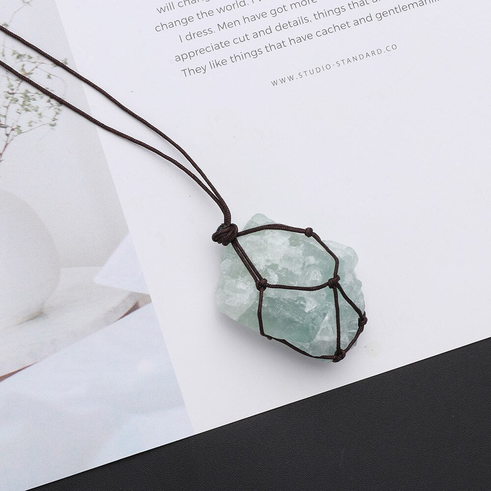 Fluorite Labradorite Natural Mineral Braid Net Pocket Pendant With Rope Reiki Healing Stone Raw Crystal Quartz Necklace 2021 New