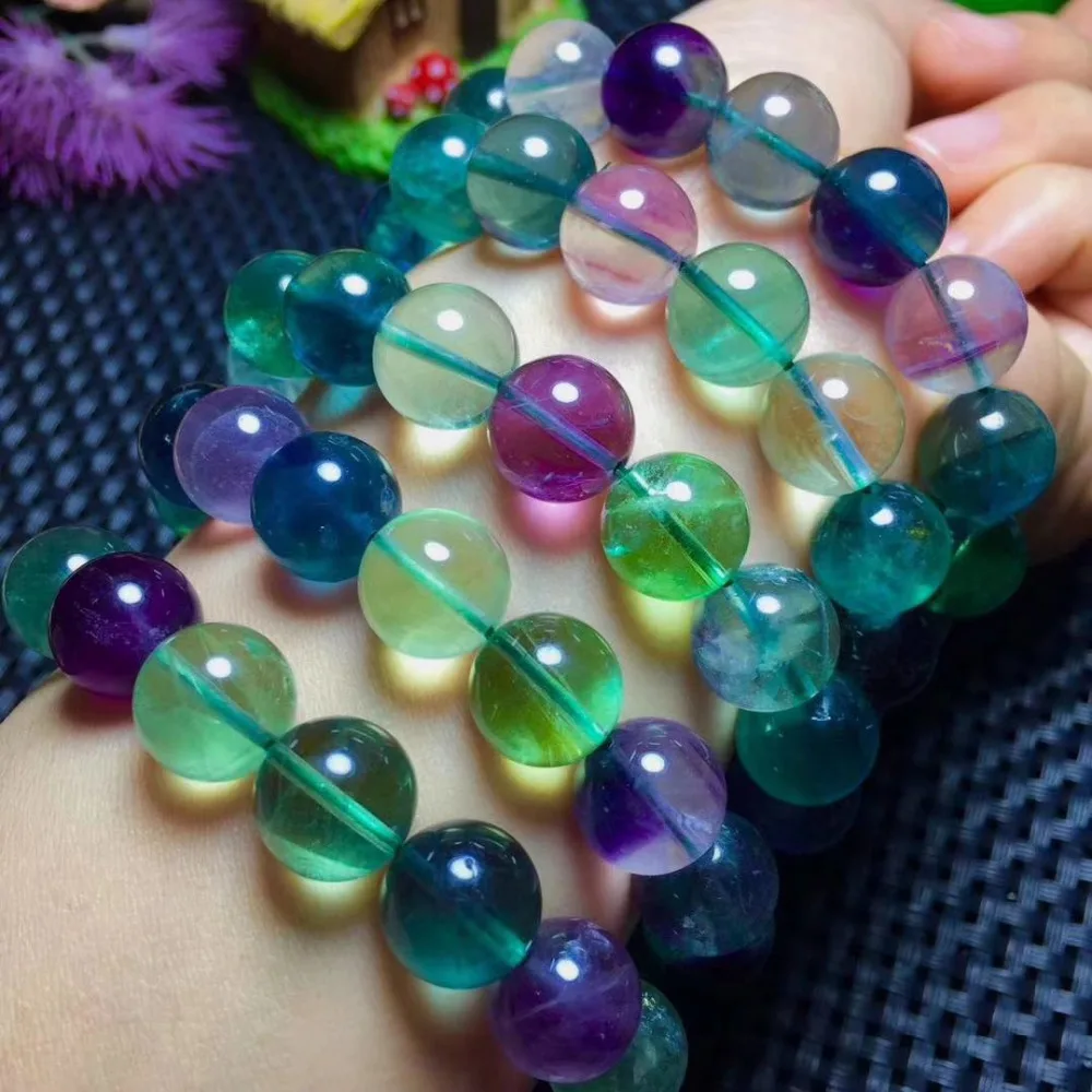 fluorite round 8-14mm multicolor bracelet 7.5inch beads nature woman 2020