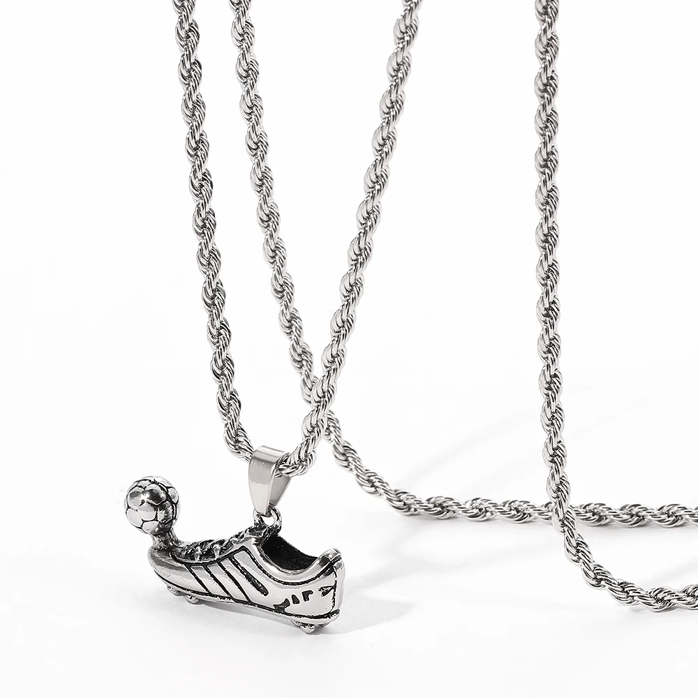 Football Shoes Pendant Necklace Sports Player Brazil Charm Collar Necklace Jewelry Street Boy Football Fans Gift Hip-hop