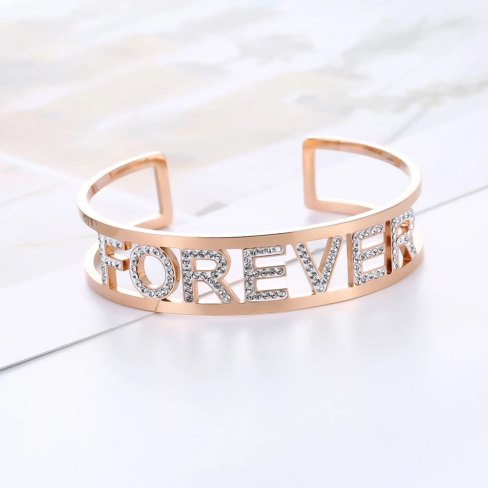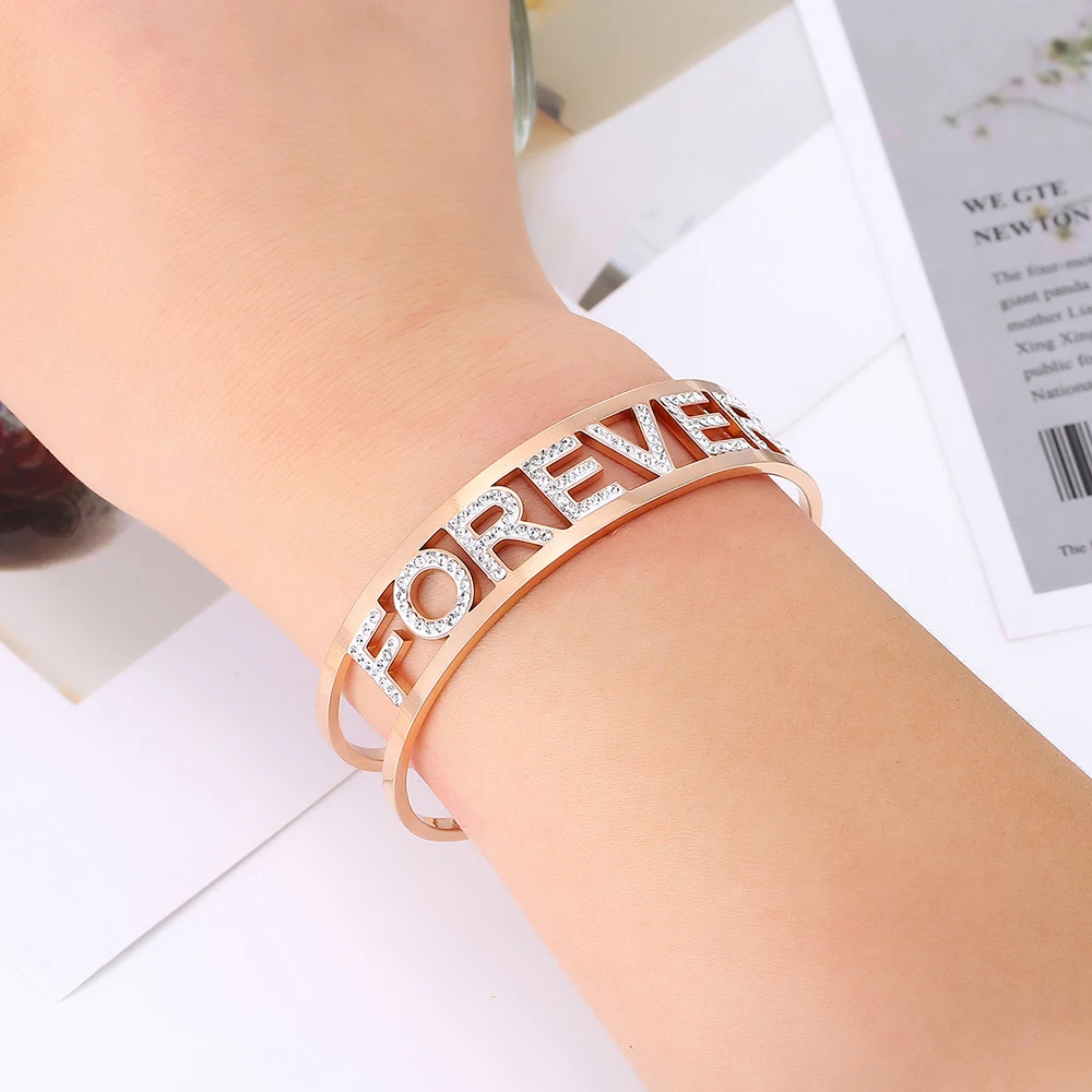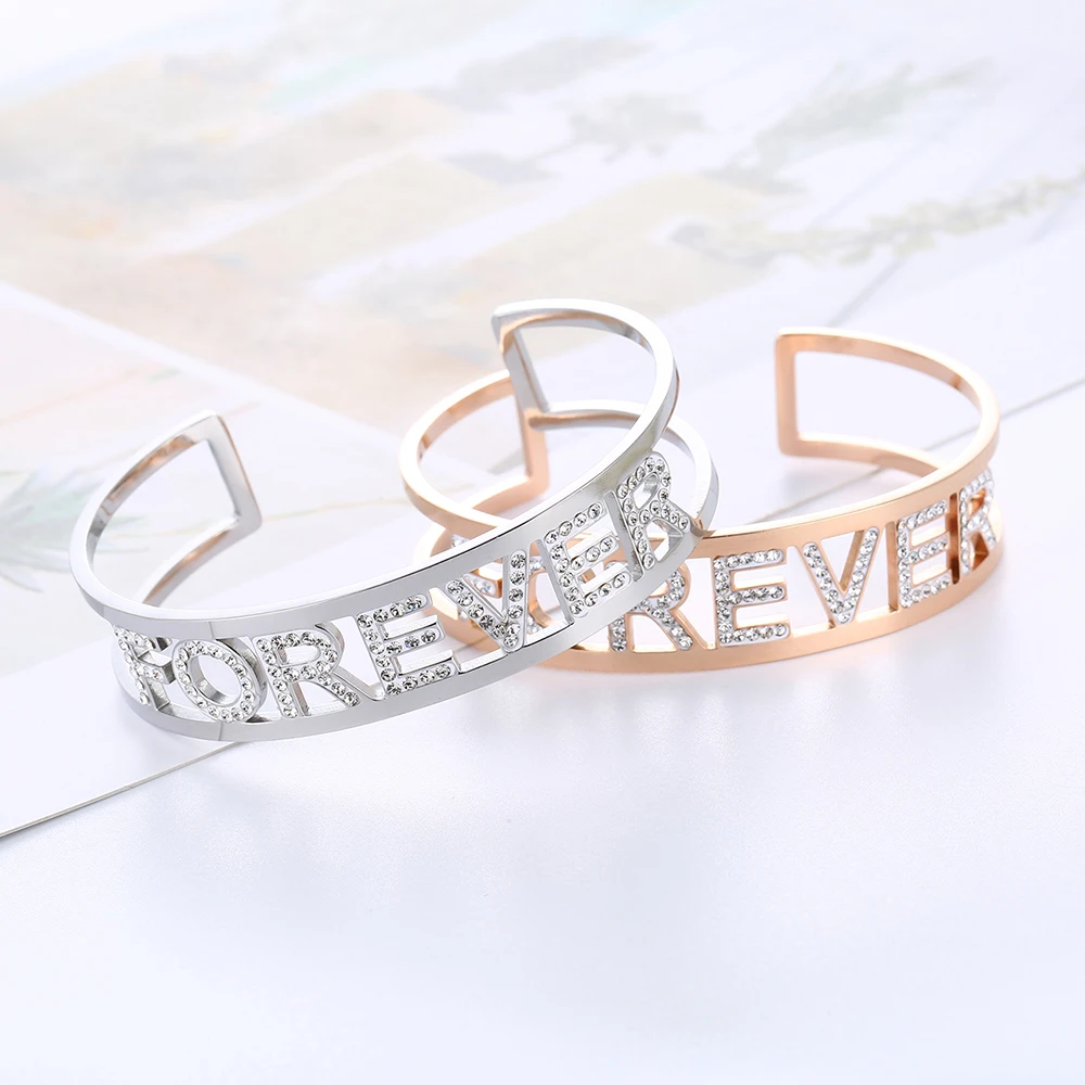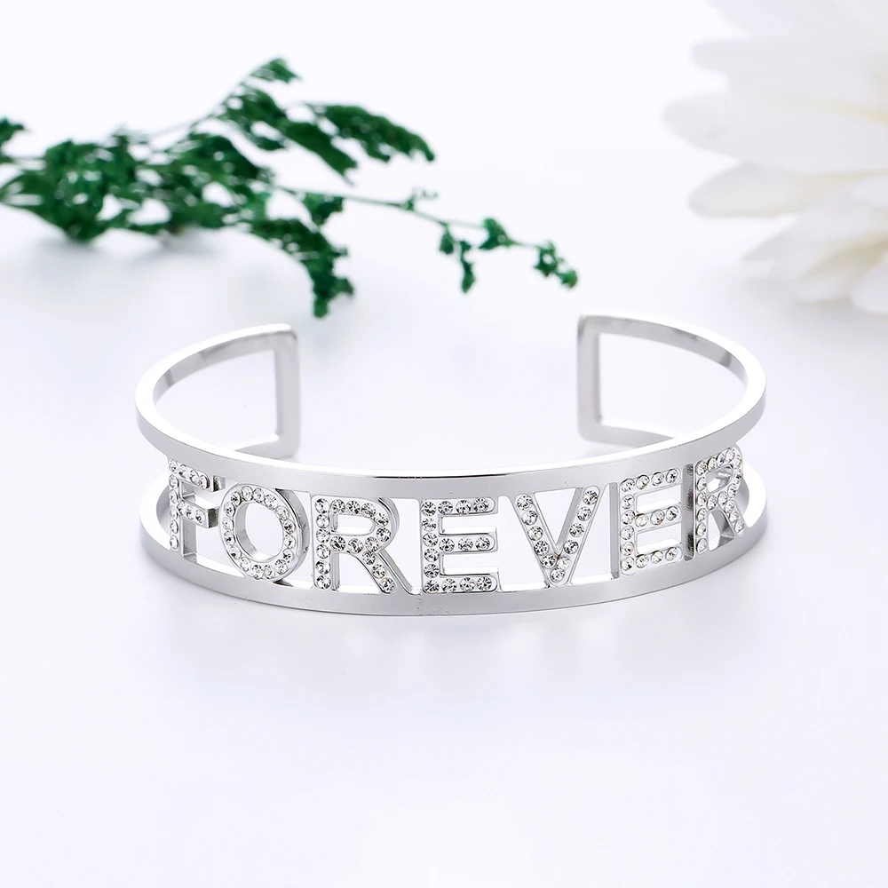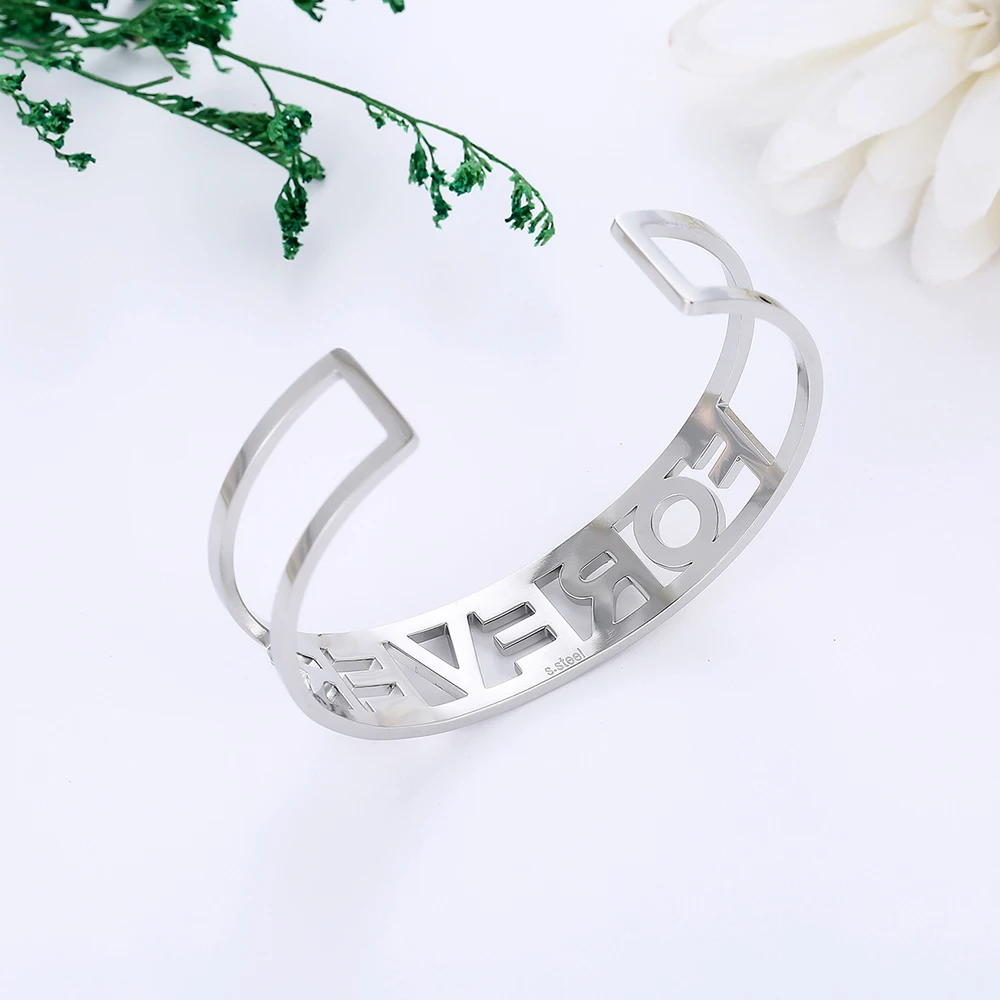 Product points: : Forever Letter Stainless Steel Open Bangle