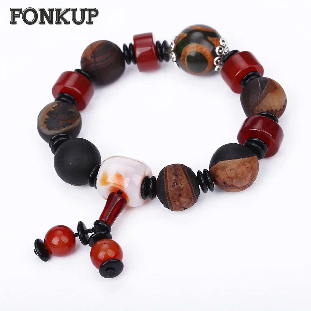 Forkup Bohemia Men Bangle Agate Charm Bracelets Engagement Male Jewellery Round Bead Hand Chain Multicolor Charms Survival