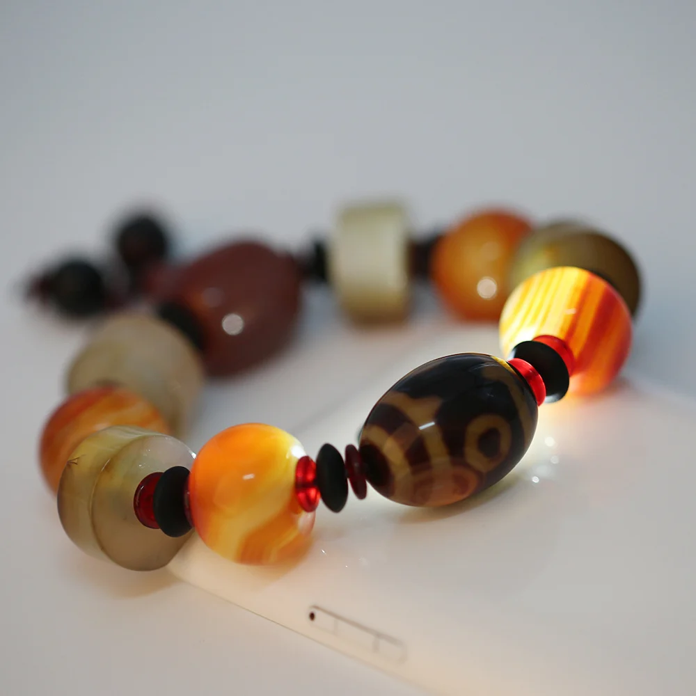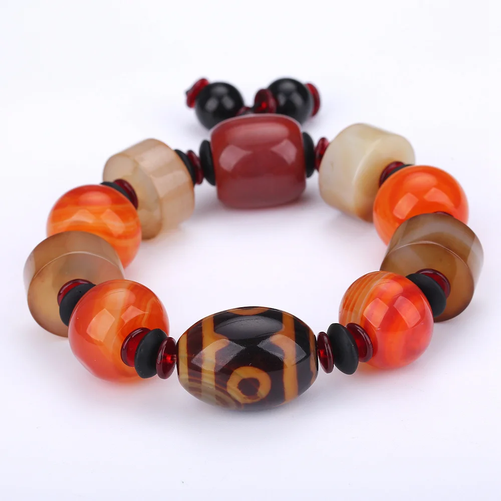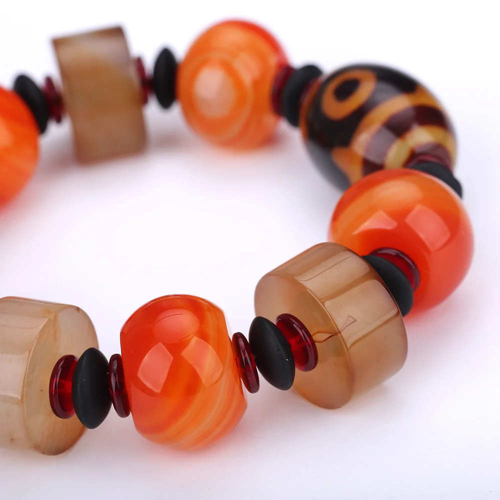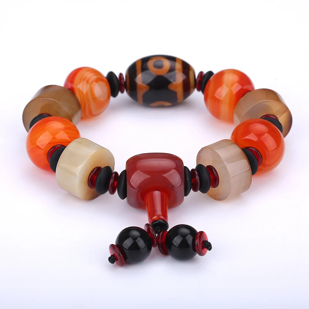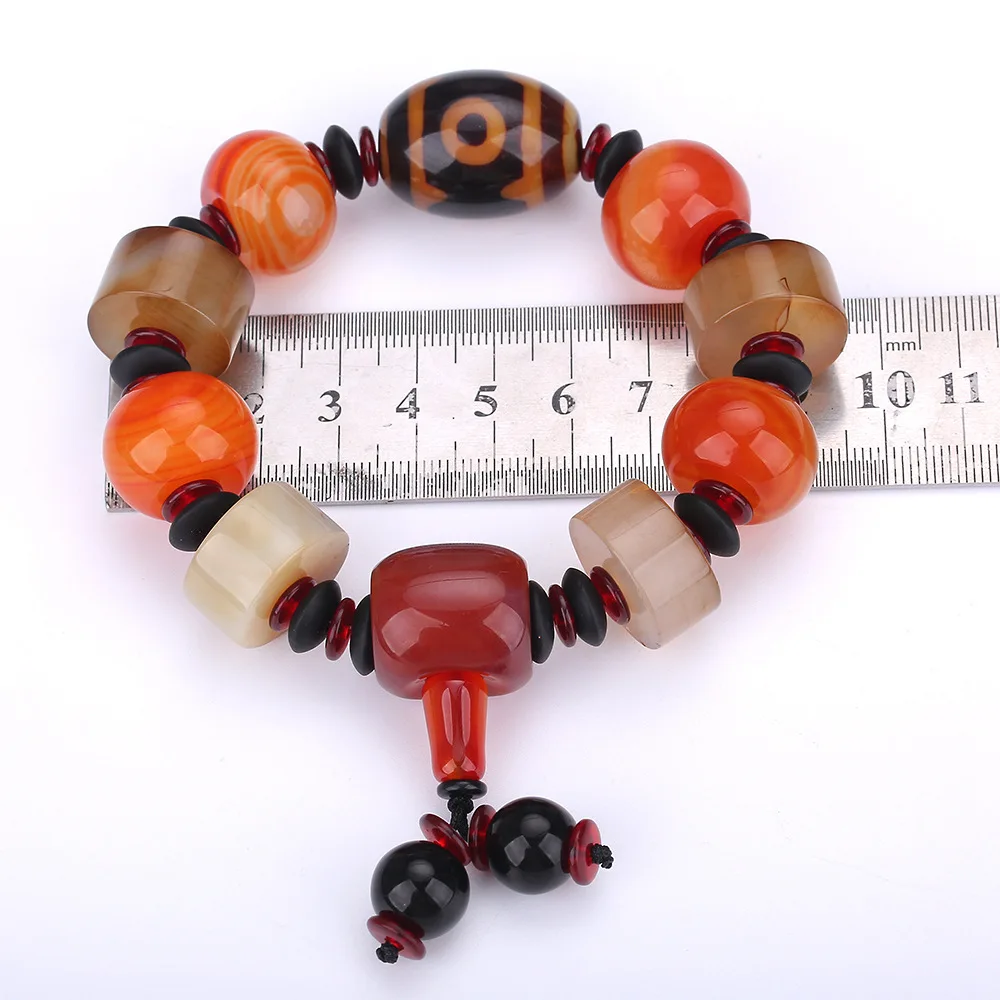 Forkup Braided Bracelet Agate Bead Chains Wristband Ethnic Men Fine Jewelry Geometric Peace Accessories Dzi Beads Black Spacer