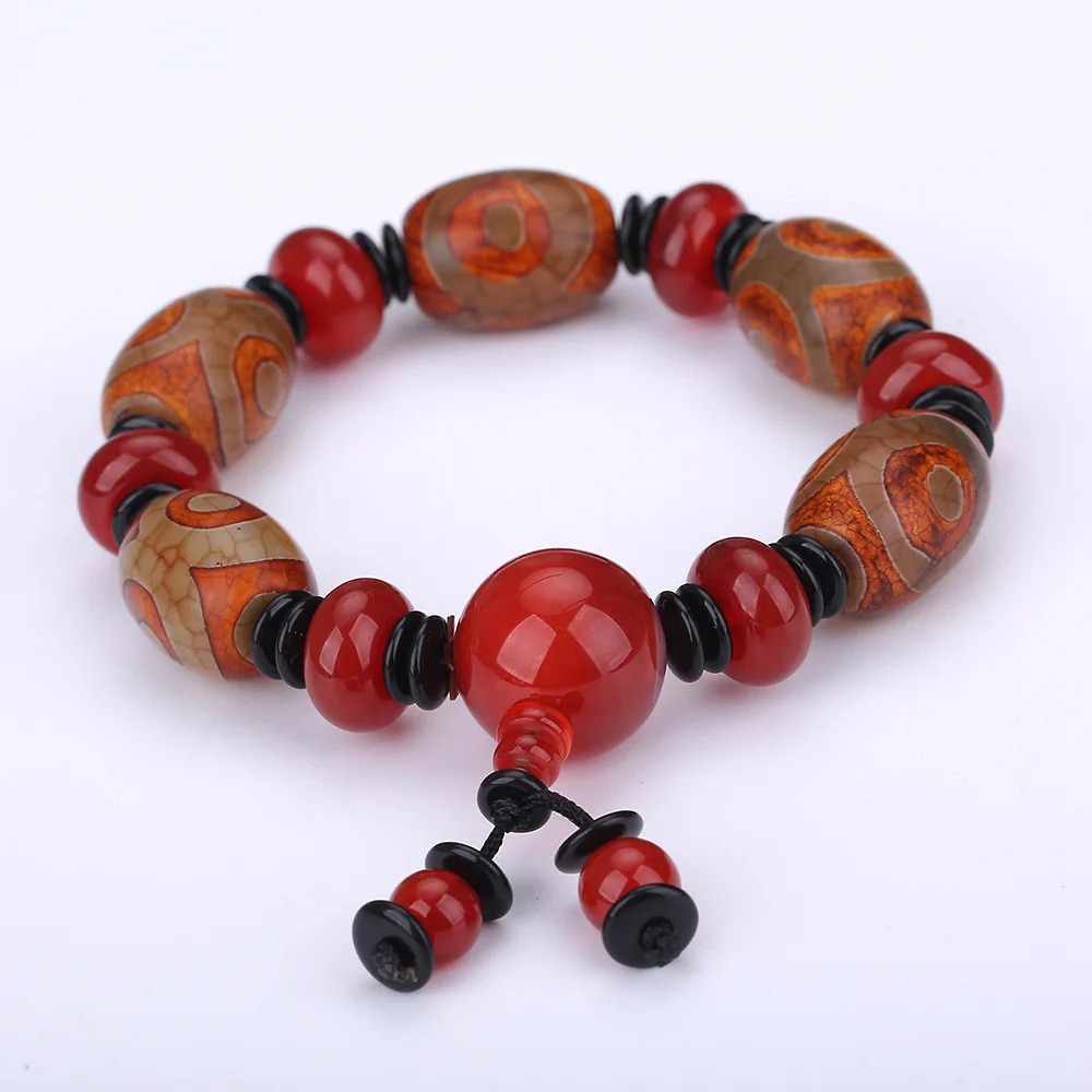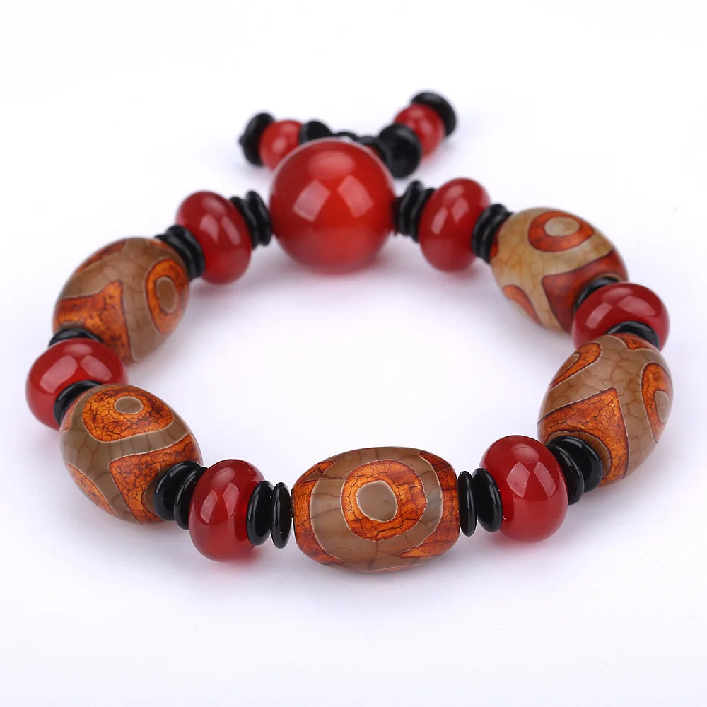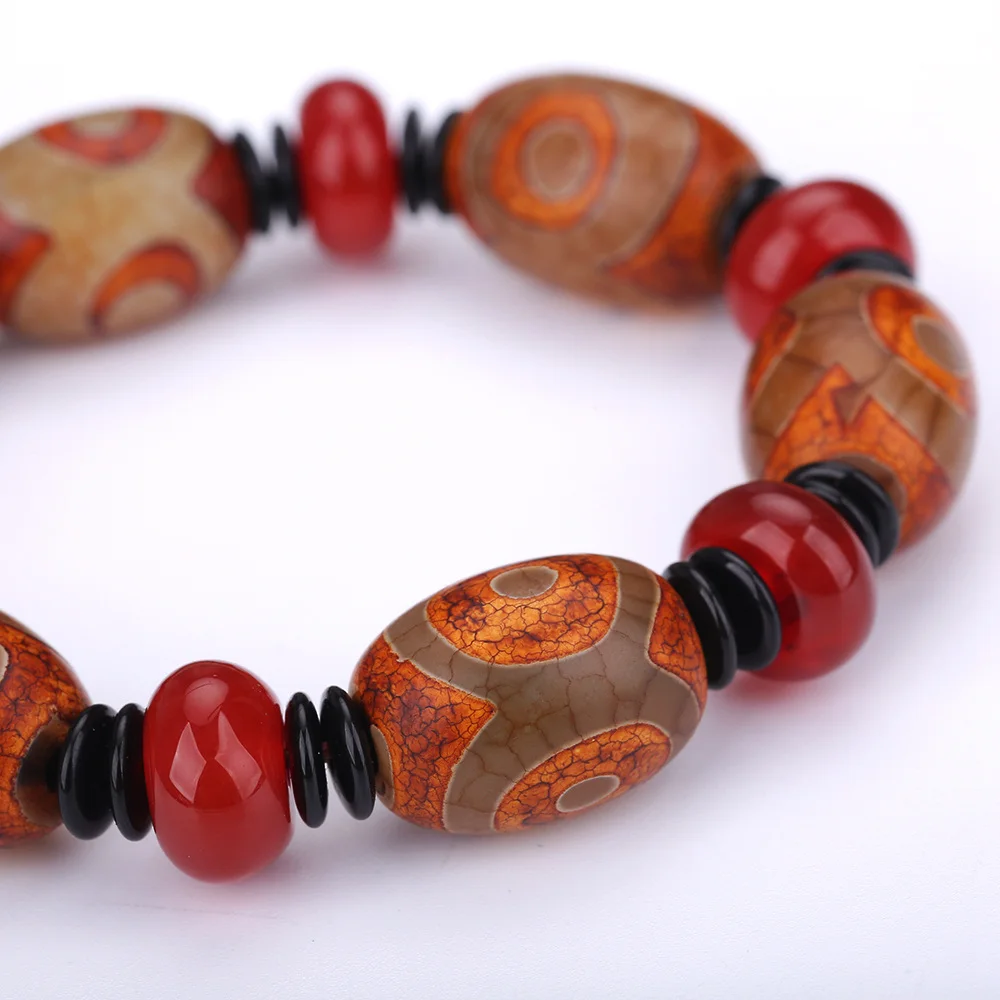 Forkup Dzi Beads Bracelets Red Agate Natural Bangles Fashion Punk Men Jewellery Geometric Black Spacer Bead Pendant Minimalist