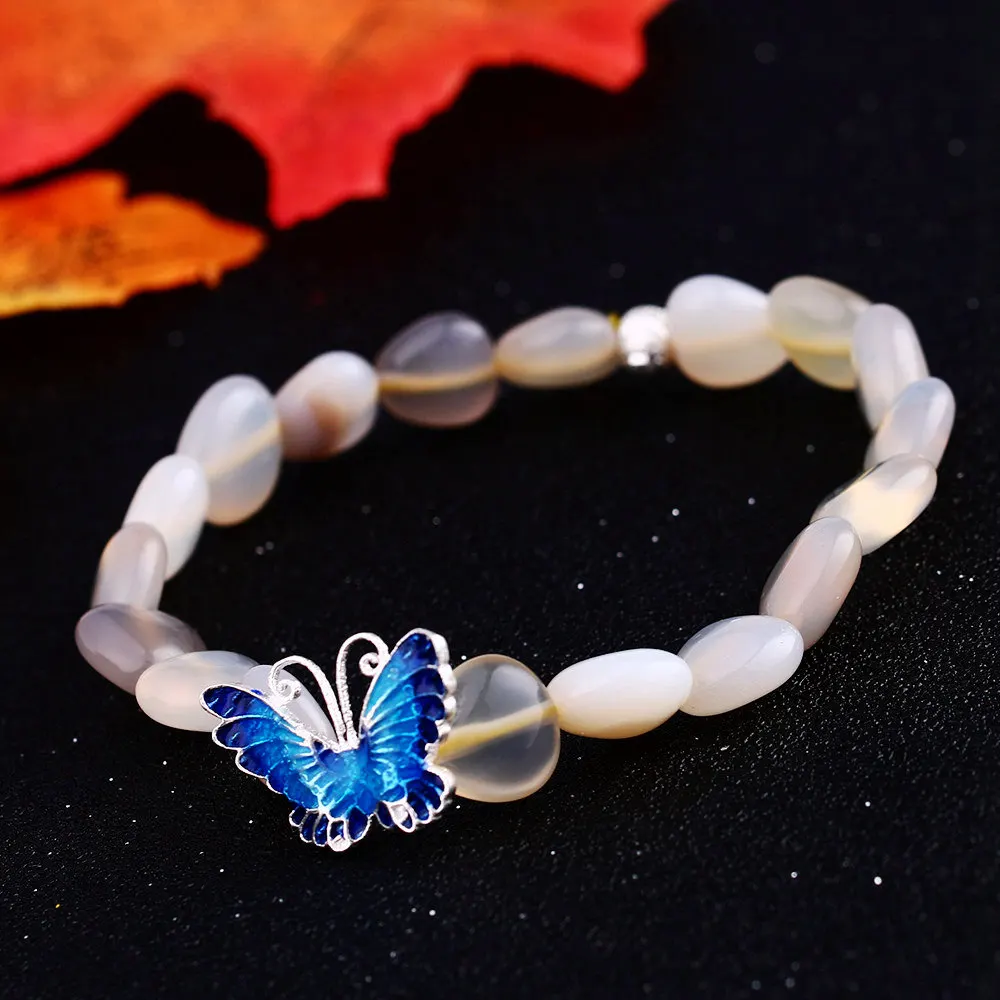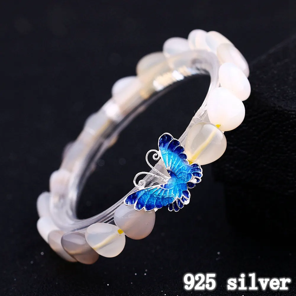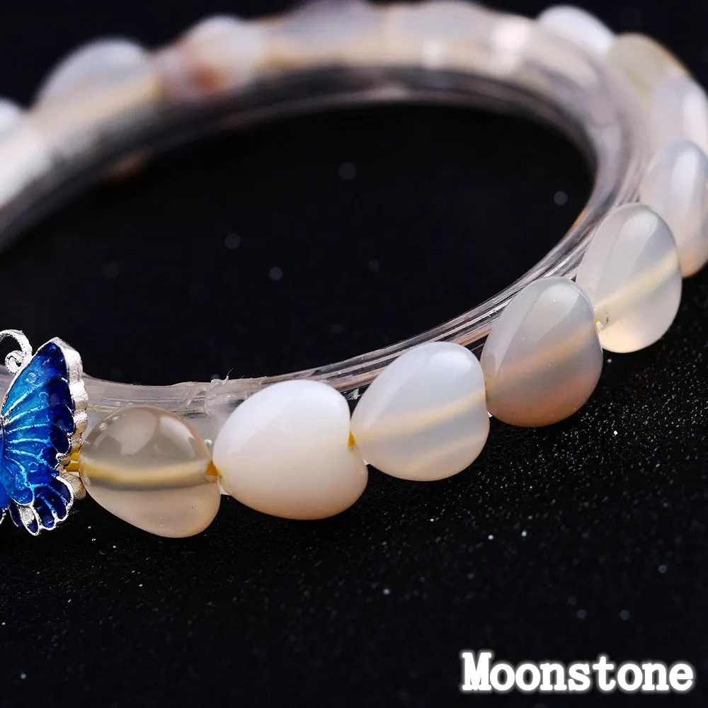 Forkup Moonstone Bracelets White Crystal Pulseira Ethnic Women Wedding Jewelry Transparent Accessories 925 Silver Butterfly Rope