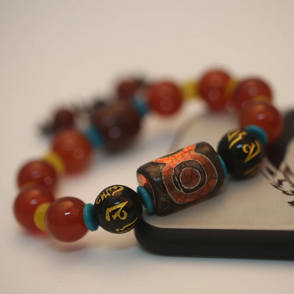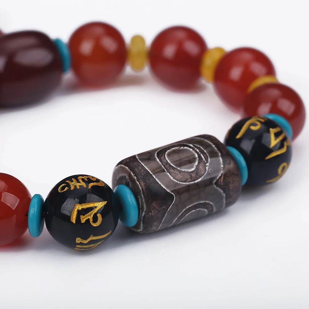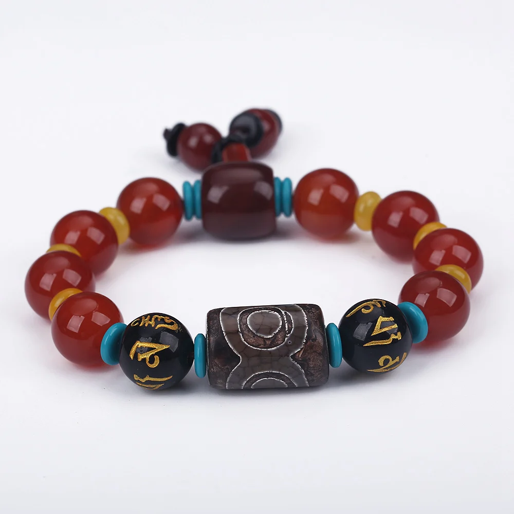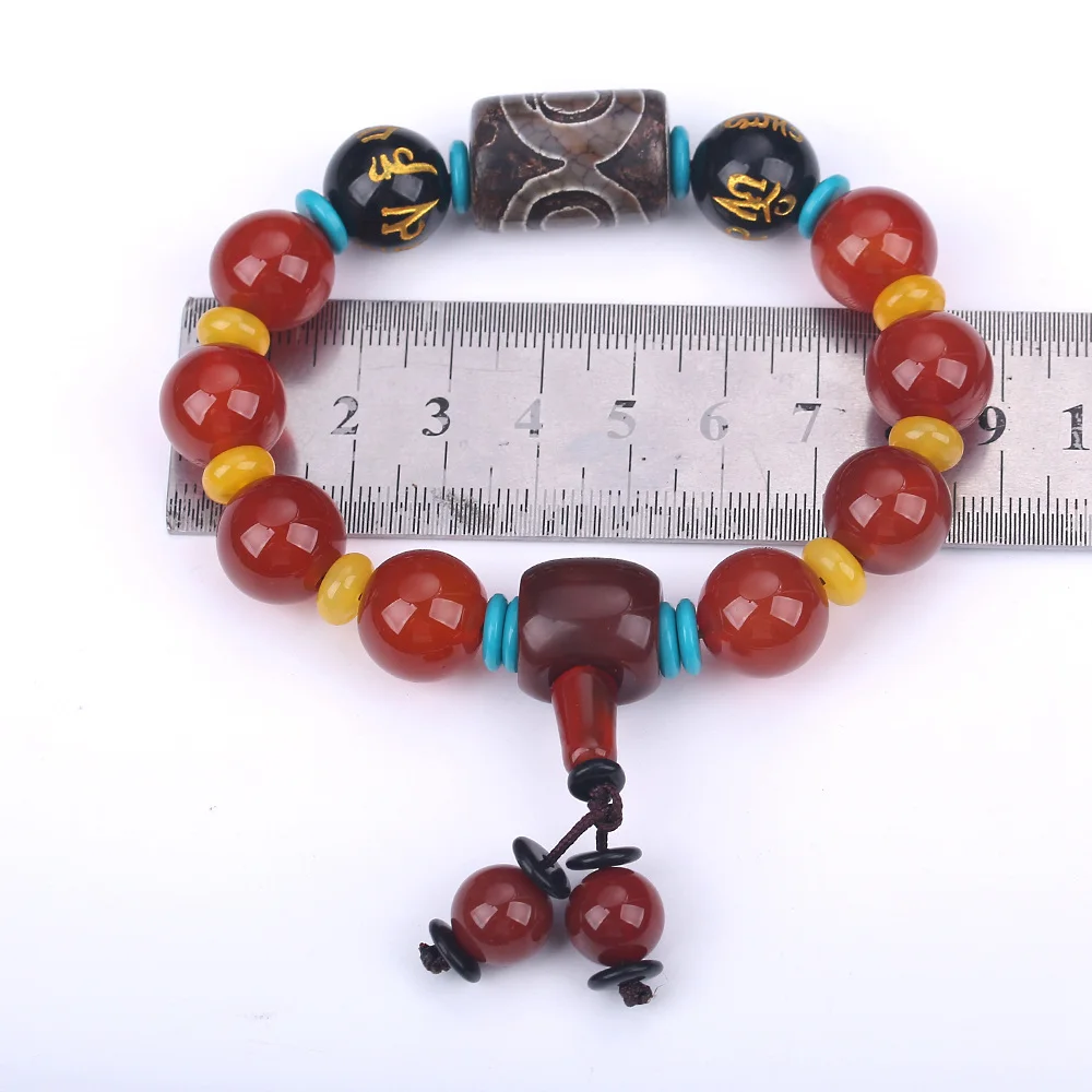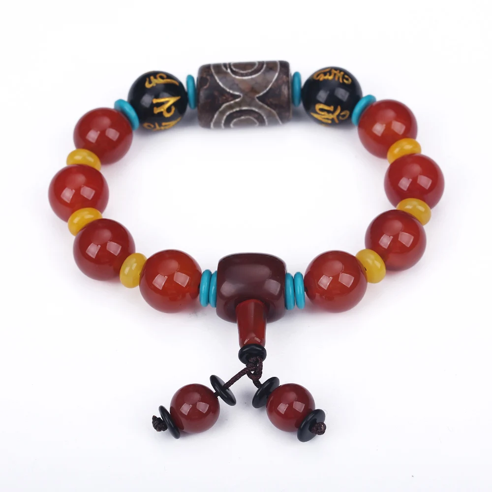 Forkup Red Beaded Bracelet Charm Beads Agate Natural Wristlet Ethnic Men Hand Chain Party Character Jewellery Spiritual Magnetic